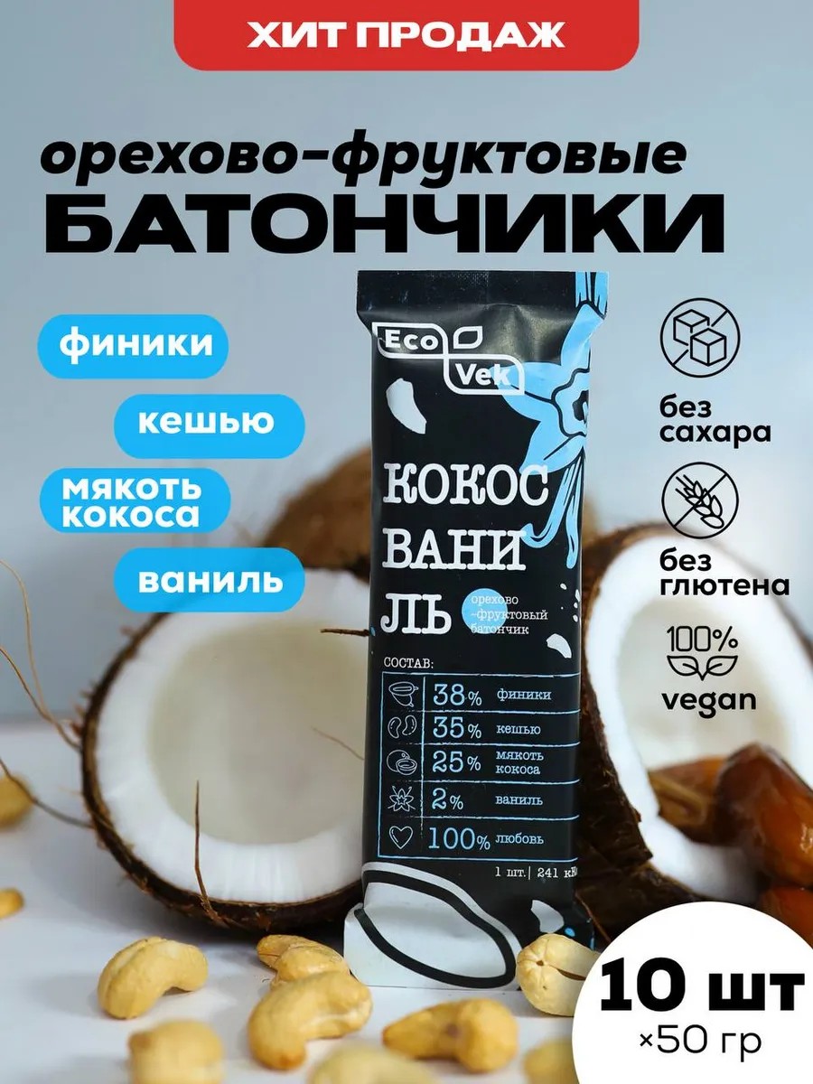 ECOVEK НАБОР БАТОНЧИКОВ ИЗ 10 вкусов без сахара