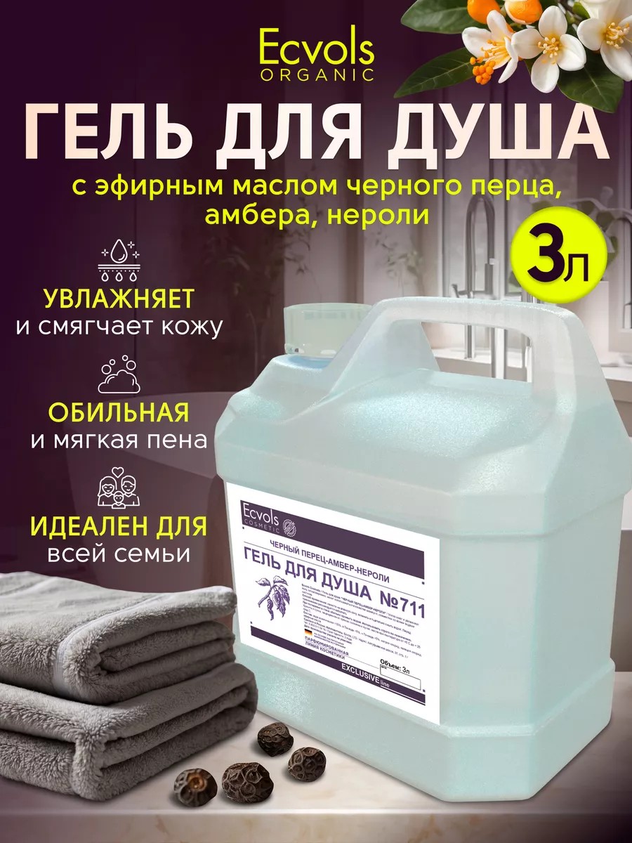 черный перец, амбер, нероли, 3 л - идеальное средство для ежедневного ухода за кожей тела. Благодаря уникальной формуле, разработанной профессионалами компании Ecvols, этот гель обеспечивает максимальный комфорт и нежность во время принятия душа. В его составе сочетаются острый аромат черного перца, теплый и нежный ароматы нероли и амбер. Натуральность и качество - основные принципы, которыми руководствуется бренд Ecvols при создании своей косметики. Содержит только полезные, натуральные и безопасные компоненты, которые бережно очищают кожу, не вызывая раздражения и аллергических реакций. Гель для душа обладает уникальными свойствами, которые делают его незаменимым в уходе за кожей. Он бережно увлажняет и питает кожу, делая ее мягкой и шелковистой. Моющая основа геля для душа изготовлена из скорлупы кокосового ореха и не содержит парабенов. Может использоваться в качестве шампуня. Содержащиеся в нем натуральные компоненты помогают сгладить мелкие морщины и увлажнять кожу, делая ее более мягкой и подтянутой. Все компоненты направлены на борьбу с воспалением и защиту от раздражителей внешней среды. Гель для душа гипоаллергенный подходит как для мужчин, так и для женщин. Его нежный аромат приятно окутывает тело, оставляя на коже легкую и стойкую парфюмерию. Каждый душ становится настоящим SPA-процедурой, которая не только очищает кожу, но и расслабляет, поднимает настроение и заряжает энергией на весь день. Гель для душа - это не просто средство для умывания, это настоящий ритуал ухода за кожей. Его уникальная формула позволяет использовать гель для душа не только на теле, но и на лице. Он бережно очищает и увлажняет кожу лица, придавая ей свежий и здоровый вид. Этот набор станет отличным дополнением к ежедневному уходу за собой. Это находка для каждого, кто заботится о своей красоте и здоровье. Попробуйте его прямо сейчас и вы не пожалеете! У нас есть акции и распродажи, вы можете купить наши товары в подарок со скидкой!