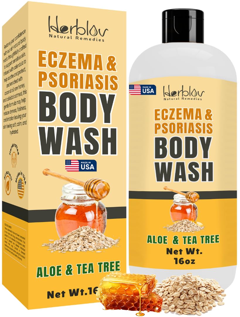 HANDCRAFTED IN THE USA: Our body wash sensitive skin formula is handcrafted in the USA with care. Whether you're seeking an oatmeal bath alternative or a calming eczema soap replacement, this natural body wash offers clean, effective relief for sensitive skin. CLEAN, NATURAL INGREDIENTS: Made with pure, plant-based ingredients like tea tree oil, this eczema treatment is free from sulfates, parabens, and artificial additives. A gentle psoriasis soap and oatmeal soap alternative that supports skin health naturally. SAFE FOR THE WHOLE FAMILY: Formulated for delicate skin, this baby eczema body wash is safe for babies, kids, and adults. Whether you're using it as a psoriasis body wash, eczema soap, or daily cleanser, it provides soothing care without harsh chemicals or fragrances. GENTLE FOR DAILY USE: Use daily as a body wash for eczema, eczema baby wash, or full-body shower gel. It lathers smoothly and rinses clean, leaving skin soft, hydrated, and refreshed without stripping essential oils. A perfect baby wash and sensitive skin body wash for all ages. RELIEVES ITCH AND IRRITATION: This gentle eczema body wash is made with colloidal oatmeal, aloe vera, raw honey, calendula, and sweet almond oil to soothe dry, itchy, irritated skin. Ideal for eczema, psoriasis, rashes, and sensitive skin, it calms discomfort and helps restore moisture.