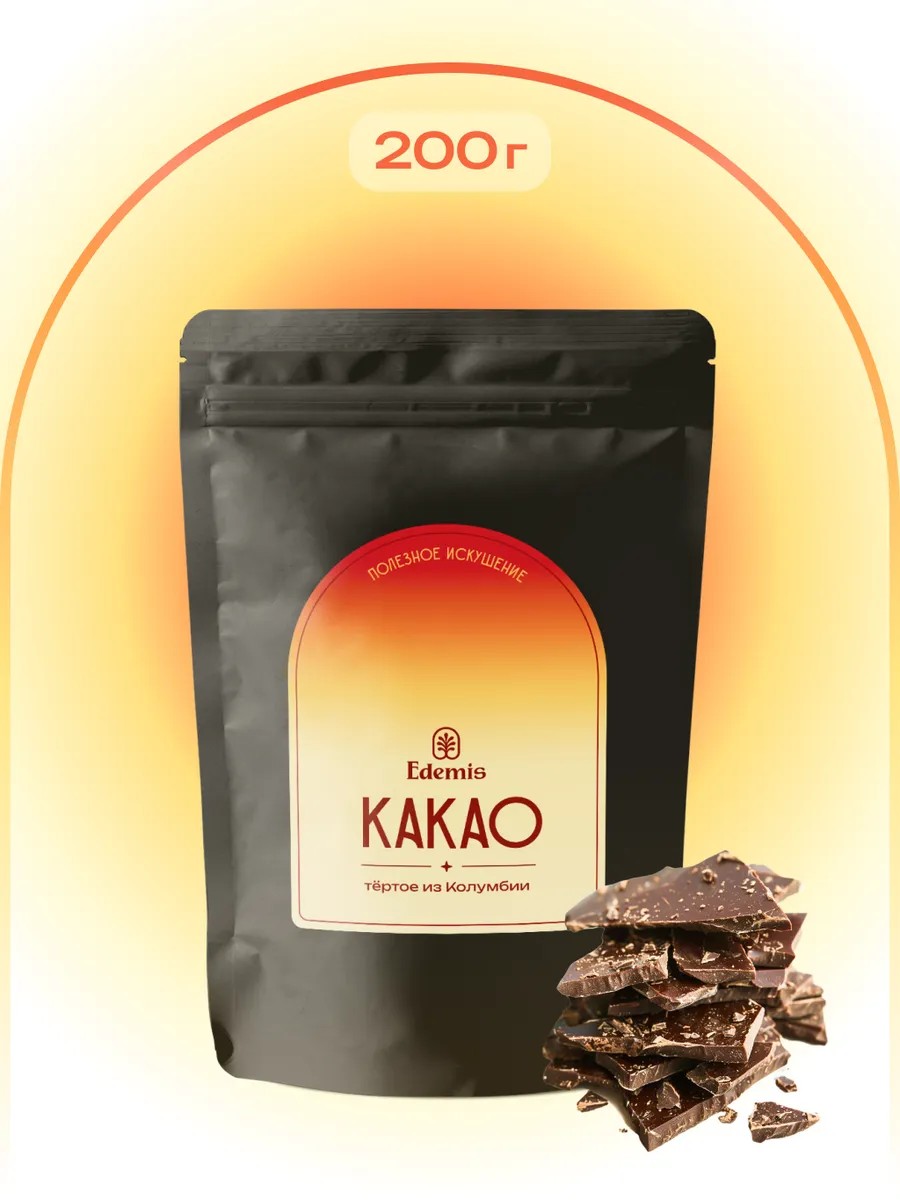 Edemis Какао тертое натуральное в ломтиках Колумбия, 200 г
