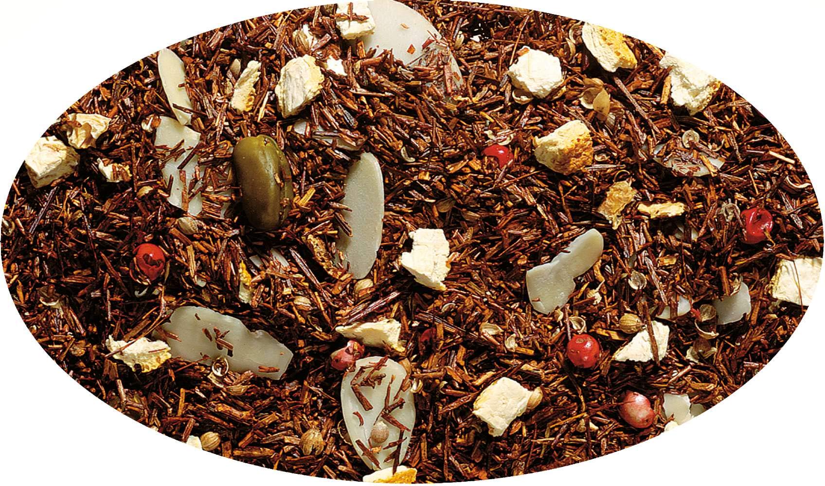 Ingredients: Rooibos tea, flaked almonds, pistachios, orange peel, coriander, flavoring, pink peppercorns MANUFACTURER'S DETAILS Eder Gewürze KG, Hauptstraße 58, 5222 Munderfing