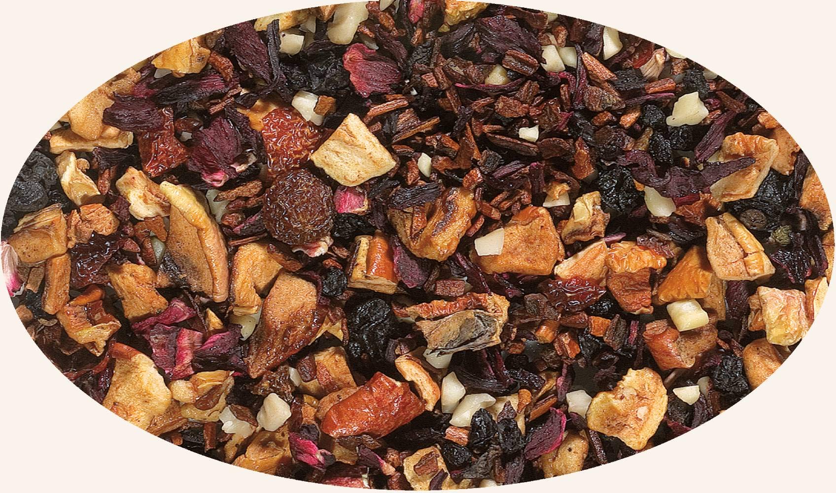 Ingredients: Apple pieces, cinnamon pieces, hibiscus flowers, almond pieces, rosehip bark, elderberries, currants, blackcurrants, flavoring. Important: Always prepare with boiling water and let it steep for approximately 5-10 minutes. This is the only way to ensure a safe product. MANUFACTURER'S DETAILS Eder Gewürze KG, Hauptstraße 58, 5222 Munderfing