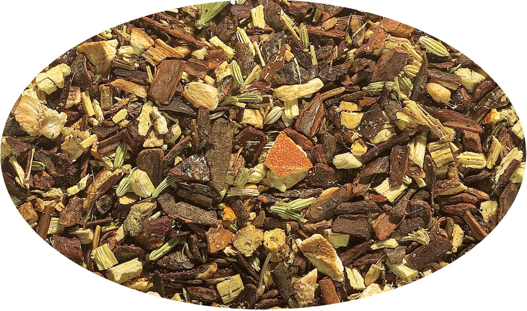 Ingredients: Cinnamon pieces, licorice root, ginger pieces, fennel, orange peel, whole cardamom pod. Contains licorice root - excessive consumption of this product should be avoided by those with high blood pressure. Preparation: 8-10 minute infusion 100 C water temperature 4-5 heaped teaspoons 1 liter MANUFACTURER'S DETAILS Eder Gewürze KG, Hauptstraße 58, 5222 Munderfing