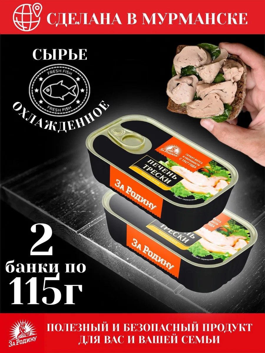 Murmansk cod liver (2 pcs) in fish oil is a 100% natural product, free of dyes and preservatives. Cod liver is a source of fish oil and contains significant amounts of a number of nutrients essential for the human body: vitamins A, D, and E, unsaturated fatty acids, folic acid, and protein. All this makes cod liver an indispensable product for a healthy diet. Made from chilled raw materials, Za Rodinu Fish Plant LLC.