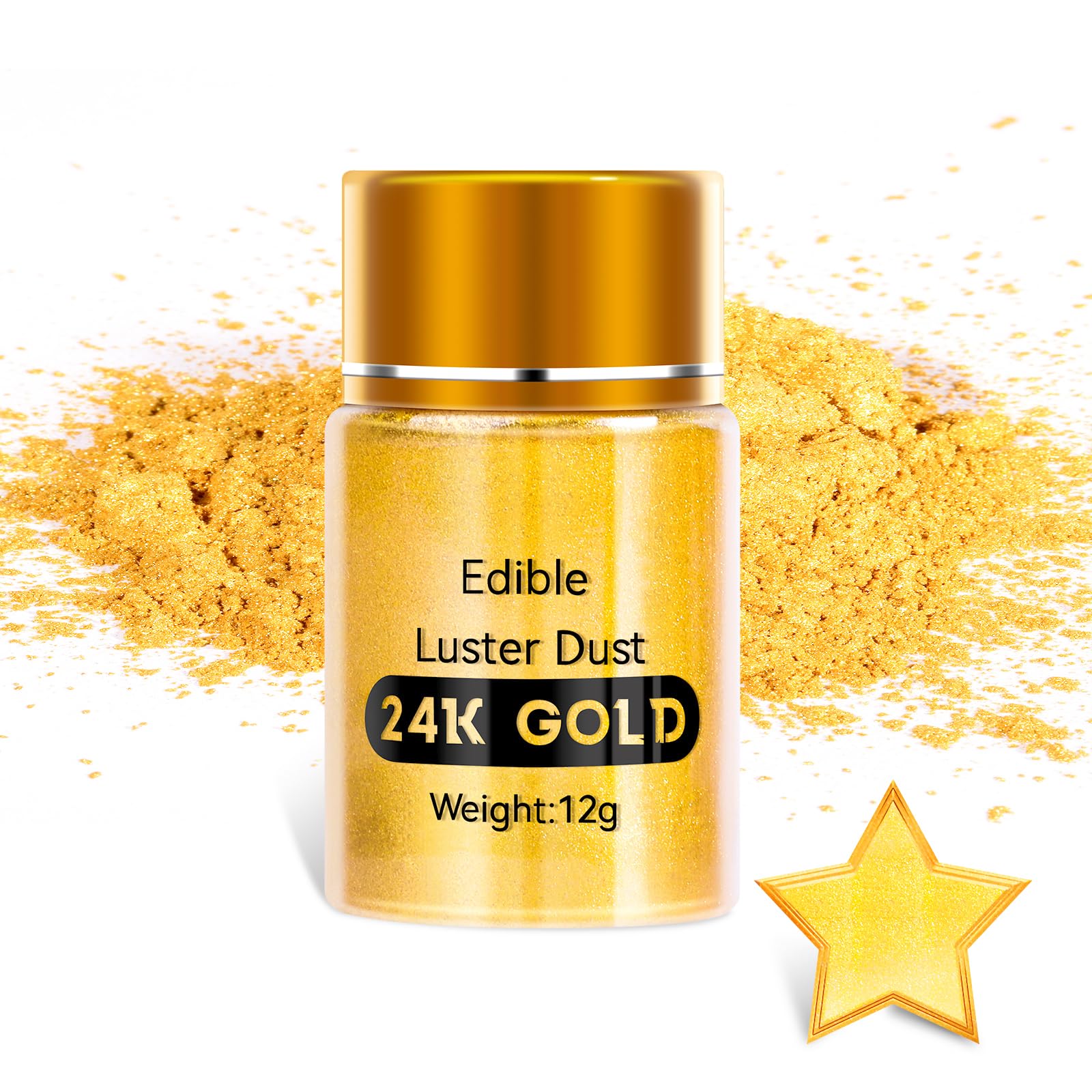 Edible Luster Dust Gold Luster Dust 12g Food Grade Metallic Shimmer Edible Glitter for Desserts Cake Decorating Baking Fondant Chocolate Candy Drinks Cookies Vegan