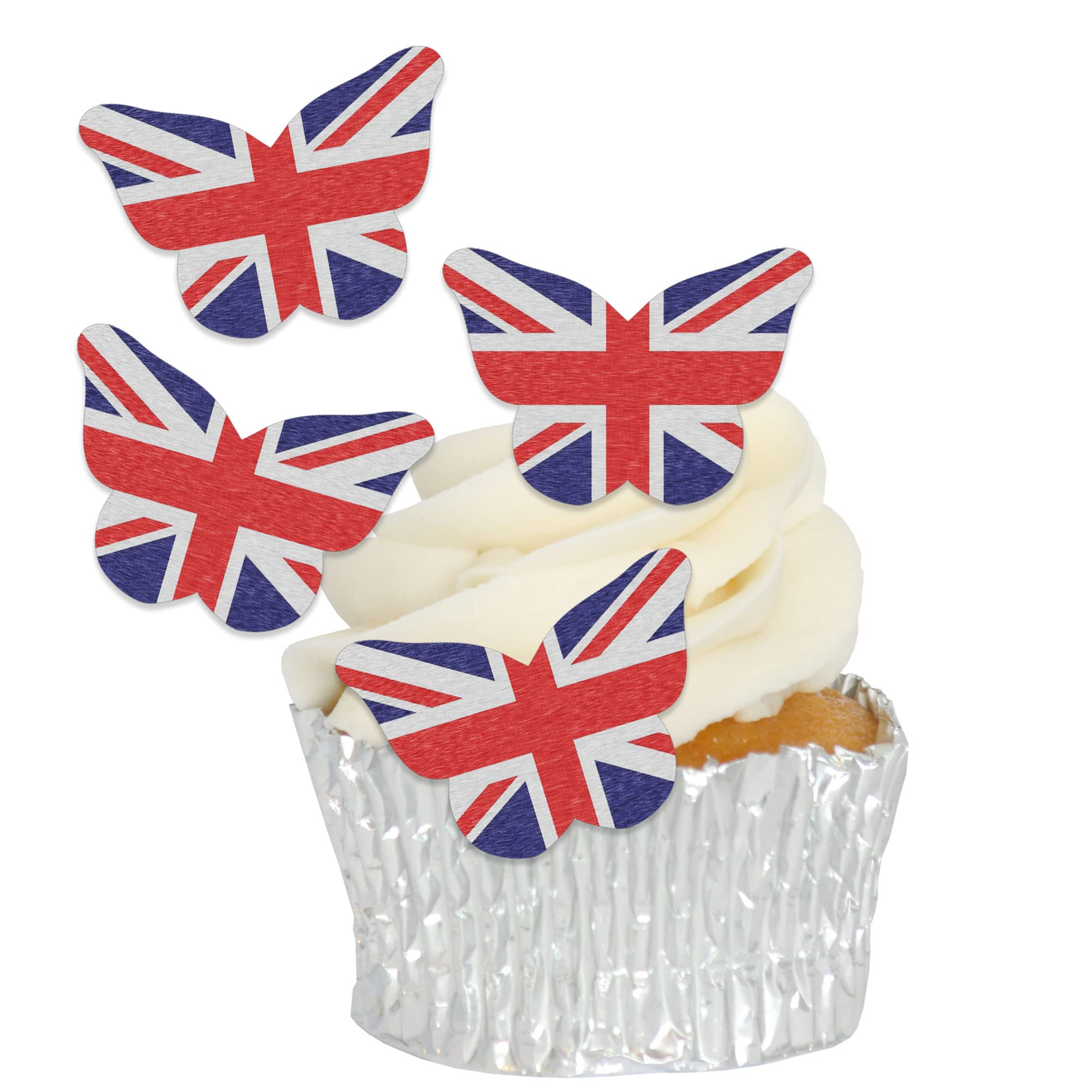 Edible Wafer Union Jack Pre-Cut Butterfly Cupcake Toppers - 24pc