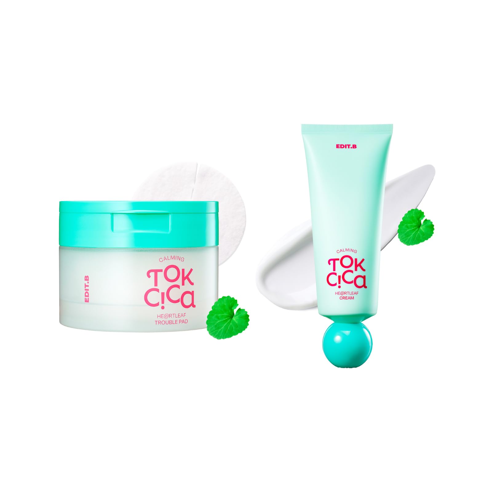 EDIT.B Calming Tok CICA Heartleaf Trouble Pad + Cream Duo | Cooling & Soothing Skincare Bundle for Sensitive Skin
