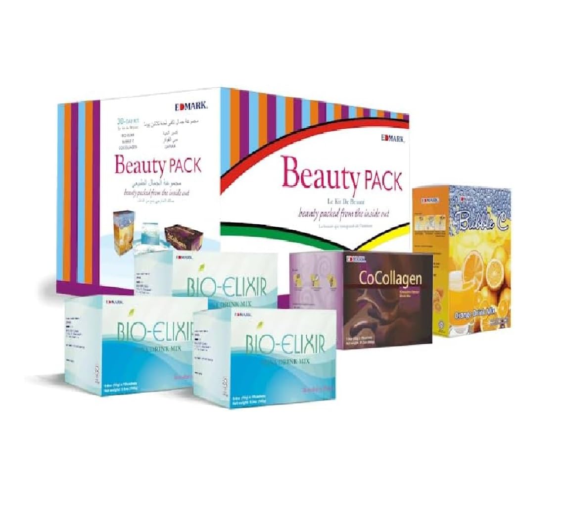Nurturing Radiance from Within Beauty package contains 2 Bio-Elixir, 1 box Bubble C and 1 box Cocollagen plus 1 FREE box of Bio-Elixir. Beauty, as per the Cambridge Dictionary, is the quality of being pleg, especially to the eyes. While subjective, there's a common notion that it evolves with age. Fortunately, advancements and innovations in wellness offer holistic solutions to support vitality and well-being as we ageThis led to the creation of Vitality Pack, a holistic assortment supporting overall well-being, including Cell Rejuvenation, Infinite Vigor, and Timeless Radiance. Crucially, our Ageless Vitality Pack is thoughtfully designed for both men and women embracing a holistic approach to well-being. Not only are these products a delightful experience for the taste buds, but they also support natural vitality. Certainly, well-being transcends mere appearances. Feeling great is equally essential. The more your inner vitality thrives, the more your sense of well-being emanates and captivates. In essence, the more energized you feel, the more responsive your body becomes.Certainly, well-being transcends mere appearances. Feeling great is equally essential. The more your inner vitality thrives, the more your sense of well-being emanates and captivates. In essence, the more energized you feel, the more responsive your body becomes. Crucially, our Ageless Vitality Pack is thoughtfully designed for both men and women embracing a holistic approach to well-being. Not only are these products a delightful experience for the taste buds, but they also support natural vitality. Fortunately, advancements and innovations in wellness offer holistic solutions to support vitality and well-being as we ageThis led to the creation of EDMARK's Ageless Vitality Pack, a holistic assortment supporting overall well-being, including Cell Rejuvenation, Infinite Vigor, and Timeless Radiance. Beauty, as per the Cambridge Dictionary, is the quality of being pleg, especially to the eyes. While subjective, there's a. EDMARK's Ageless Vitality Pack, a holistic assortment supporting overall well-being, including cell rejuvenation, infinite vigor, and timeless radiance.