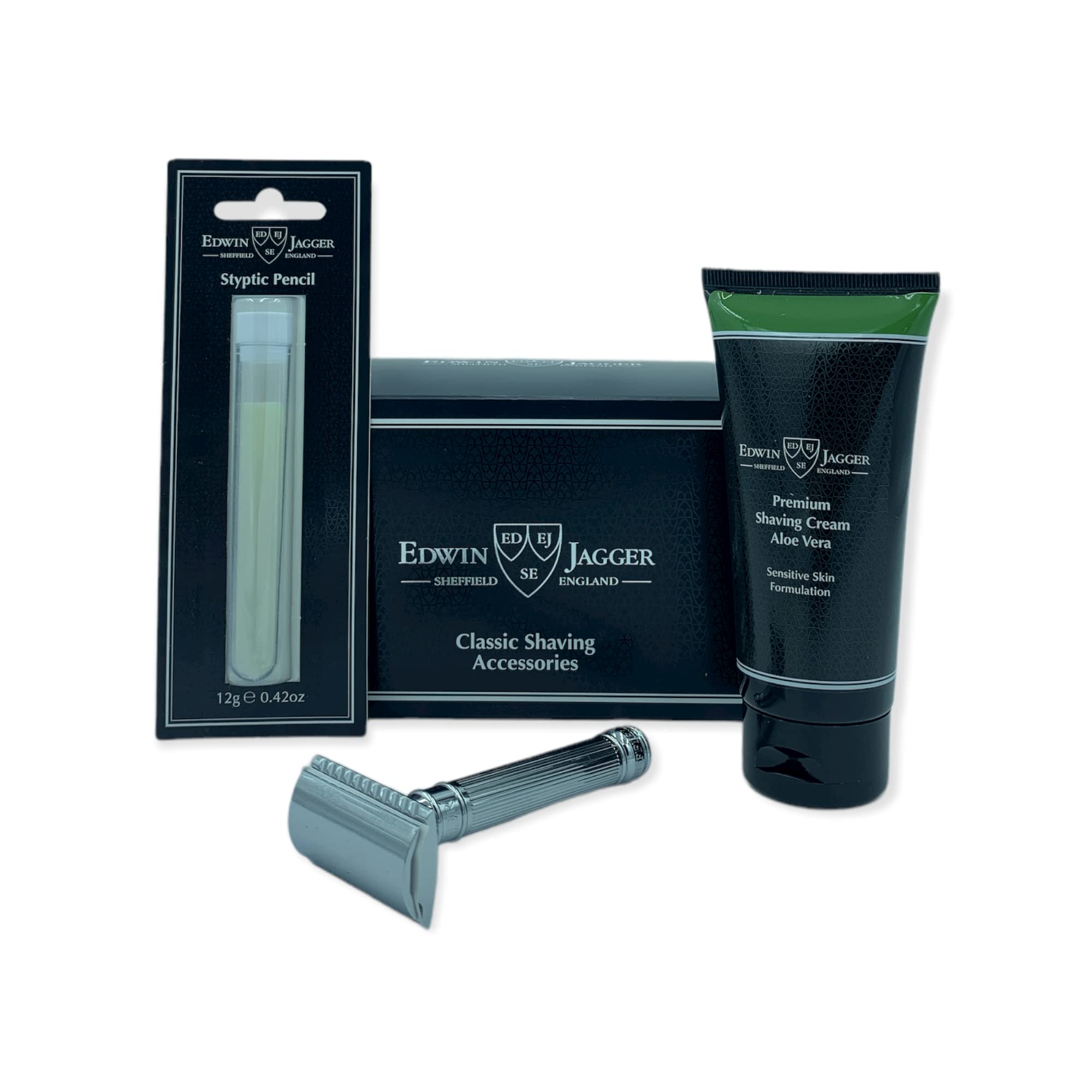 Looking for the perfect gift for the man in your life? Treat him to the ultimate shave experience with the brand that brings precision and perfection to every shave. Internationally renowned for exquisite workmanship, Edwin Jagger manufactures luxury handmade shaving accessories. From its Sheffield, England factory where finest materials are combined with artisan craftsmanship, exclusively designed Edwin Jagger shaving razor and shaving brushes are exported worldwide. Meet our specialist sales partners offering highest quality products and services here. Discover and learn more about the Edwin Jagger brand. Edwin Jagger, established in 1988, designs and manufactures a range of classic and contemporary high-quality wet shaving accessories. Expert design, carefully selected materials and industry leading manufacturing processes, combined with hand finishing, result in product perfection. Our extensive range of shaving razors incorporating the latest razor blade systems, finest synthetic fibre shaving brushes, shaving sets, shaving creams and soaps meets the grooming needs of gentlemen today. Don't Settle for Imitations: Internationally renowned for exquisite workmanship, Edwin Jagger manufactures luxury handmade shaving accessories. From its Sheffield, England factory where finest materials are combined with artisan craftsmanship, exclusively designed Edwin Jagger shaving razor and shaving brushes are exported worldwide.Perfect Shave Every Time - Demand for finest quality products with genuine classic ingredients motivated us to search for something really special. Our unrivalled experience of manufacturing specialist wet-shaving products gave us true insight into what is required of the finest shaving creams, soaps and lotions. Highest Quality - Expert design, carefully selected materials and industry leading manufacturing processes, combined with hand finishing, result in product perfection. Our extensive range of shaving razors incorporating the latest razor blade systems, finest synthetic fibre shaving brushes, shaving sets, shaving creams and soaps meets the grooming needs of gentlemen today. Edwin Jagger Styptic Pencil - Made by Edwin Jagger in Sheffield, this is a magical little stick that has what is known as a "styptic effect", meaning it'll help stymie the flow of blood if you get nicked. Edwin Jagger Shaving Cream - A long-lasting shaving cream by Edwin Jagger, infused with healing plant extracts and essential oils.. Foams up delightfully and luxuriously with a good brush, nourishing your skin even as it lifts and softens bristles in preparation for a butter-smooth razor glide. Edwin Jagger Double Edged Safety Razor - The Sheffield native Edwin Jagger double edged razor was so influential when it came out in 2008, that lesser brands immediately created copycat double edge razors. Today, it continues to punch well above its price tag by delivering a quality shave worthy of much more expensive razors.