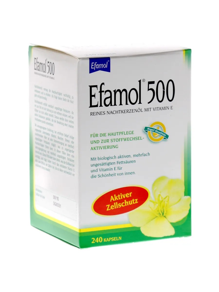 Efamol 500 содержит специальное масло примулы вечерней Rigel. Ригель относится к особым семенам вечерней примулы, которые особенно ценны благодаря многолетнему тщательному отбору и селекции. Драгоценное масло извлекается из семян примулы вечерней особо щадящим способом, что позволяет сохранить ингредиенты. В результате получается драгоценное золотое масло исключительного качества. Он богат полиненасыщенными жирными кислотами. Витамин Е помогает защитить клетки от окислительного стресса.
