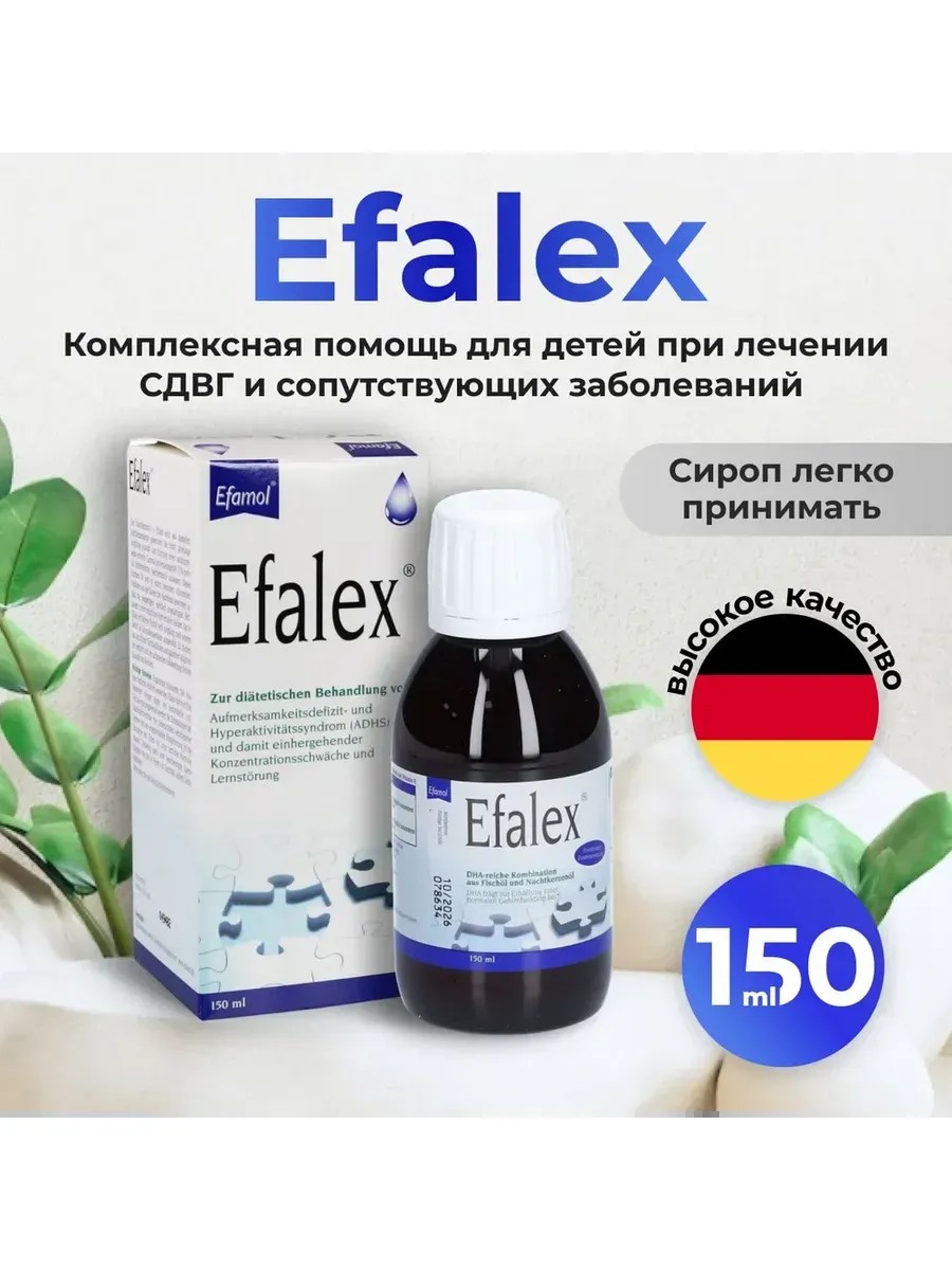 Efalex сироп (Германия) – мощная поддержка мозга, зрения и иммунитета для детей и взрослых. Efalex от Efamol – это высококачественная добавка к пище с комплексом омега-3 и омега-6, разработанная для улучшения мозговой деятельности, зрения и общего здоровья. Произведенный в Германии, Efalex содержит сбалансированное сочетание жидкого рыбьего жира, и витамина Е, что делает его идеальным для детей с синдромом дефицита внимания и гиперактивности, а также для взрослых, нуждающихся в поддержке памяти и концентрации. Сироп полезен для детей, так как Омега-3 поддерживает здоровое развитие мозга, улучшает концентрацию и способствует укреплению зрения. Благодаря жидкой форме Омега-3 и витамину Е, легко усваивается и обеспечивает максимальную пользу для организма, помогает восполнить дефицит жизненно важных жирных кислот, необходимых для работы мозга и нервной системы. Efalex особенно полезен для детей от 1 года, а также подростков и взрослых, с проблемами концентрации и ослабленной памятью. Этот сироп полезен и для женщин и мужчин повышая устойчивость к стрессам. Содержит жидкий рыбий жир, богатый омега-3. Витаминный комплекс поддерживает иммунитет у женщин и детей, помогая в защите клеток от повреждений. Витамин Е (жидкий) поддерживает здоровье глаз, зрение, а также укрепляет иммунитет. Подходит для детей и для взрослых, включая подростков, пожилых женщин и мужчин. Выпускается в виде жидкого сиропа для легкого усвоения – особенно удобно для детей. Подходит для детей и взрослых с повышенной чувствительностью к продуктам питания. Эфалекс эффективен при повышенной умственной нагрузке у взрослых, нуждающихся в поддержке когнитивных функций. Efalex – натуральное средство для поддержки здоровья, это больше, чем просто рыбий жир, это лечебное питание для здоровья всей семьи.