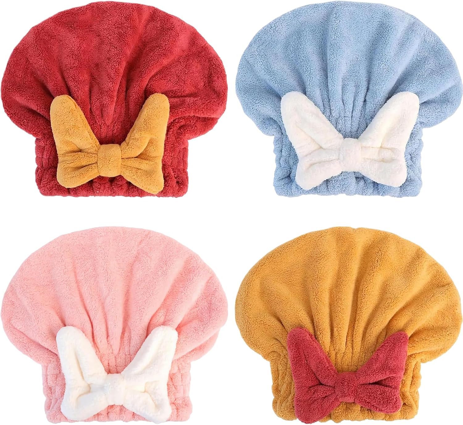 Efficieint New Super Absorbent Hair Towel Wrap,Microfiber Hair Towel Wrap, Quick-Drying Thickened Soft Bow Tie Hair Towel Wrap Dry Turban for Women Long Hair (4Pcs)