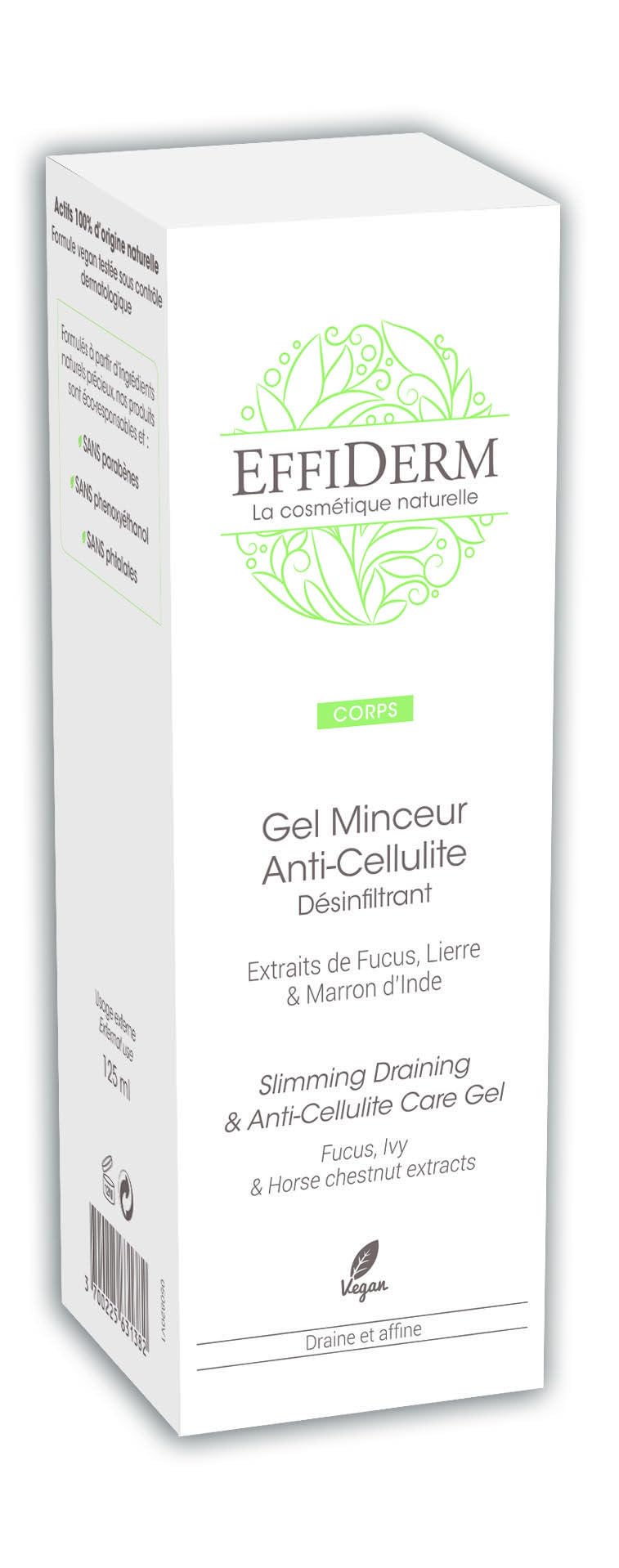 EFFIDERM is a trusted brand developed by French INELDEA Laboratories, leaders in natural health for over 20 years. Specializing in dermo-cosmetics, EFFIDERM offers treatments that combine innovation, effectiveness, and safety to meet the specific needs of each skin type. Each product is formulated with carefully selected natural ingredients to enhance your skin while respecting its balance. DIRECTIONS FOR USE: Apply to the affected areas with a massage. Can be used with the Fat Burning Slimming Gel: burns fat to activate lipolysis, the Anti-cellulite Gel limits fat storage. COMPOSITION: Paraben-free, colorant-free, GMO-free, no ingredients of animal origin, phthalate-free, phenoxyethanol-free, aluminum-free, no colorant. Suitable for sensitive skin, dermatologically tested. CELLULITE ON HIPS, BUTTOCKS THIGHS: Ideal for gynoid figures, it helps reduce roundness and the orange peel appearance thanks to a combination of powerful natural extracts. Fucus and Ivy extracts promote tissue drainage and the elimination of toxins, while Horse Chestnut stimulates circulation and the elimination of fat. Grapefruit and Juniper essential oils add anti-water retention and anti-cellulite properties. Enriched with Gl. FIGHTS LOCALIZED FAT: Fights localized cellulite on the lower body: hips, buttocks, thighs. Promotes drainage, ideal to complement your workout.EFFIDERM est une marque de confiance développée par les Laboratoires français INELDEA, leaders en santé naturelle depuis plus de 20 ans. Spécialisée en dermo-cosmétique, EFFIDERM offre des soins qui allient innovation, efficacité et sécurité pour répondre aux besoins spécifiques de chaque type de peau. Chaque produit est formulé avec des ingrédients naturels soigneusement sélectionnés pour sublimer votre peau tout en respectant son équilibre. CONSEILS D'UTILISATION : Appliquer sur les zones concernées en massant. Peut être utilisé avec le Gel Minceur Brûle-graisses : brûle les graisses pour activer la lipolyse, le Gel anti-cellulite limite le stockage des graisses. COMPOSITION : Sans parabènes, sans colorants, sans OGM, sans ingrédient d'origine animale, sans phtalate, sans phénoxyethanol, sans aluminium, pas de colorant. Respecte les peaux sensibles, testé sous contrôle dermatologique. CELLULITE SUR HANCHES, FESSES CUISSES : Idéal pour les silhouettes gynoïdes, il aide à réduire les rondeurs et l'aspect peau d'orange grâce à une combinaison d'extraits naturels puissants. Les extraits de Fucus et de Lierre favorisent le drainage des tissus et l'élimination des toxines, tandis que le Marron d'Inde stimule la circulation et l'élimination des graisses. Les huiles essentielles de Pamplemousse et Genièvre ajoutent des propriétés anti-rétention d'eau et anti-capitons. Enrichi en Gl. LUTTE CONTRE LA GRAISSE LOCALISEE : Combat la cellulite localisée sur le bas du corps : les hanches, les fesses, les cuisses. Favorise le drainage, idéal pour compléter votre séance de sport.