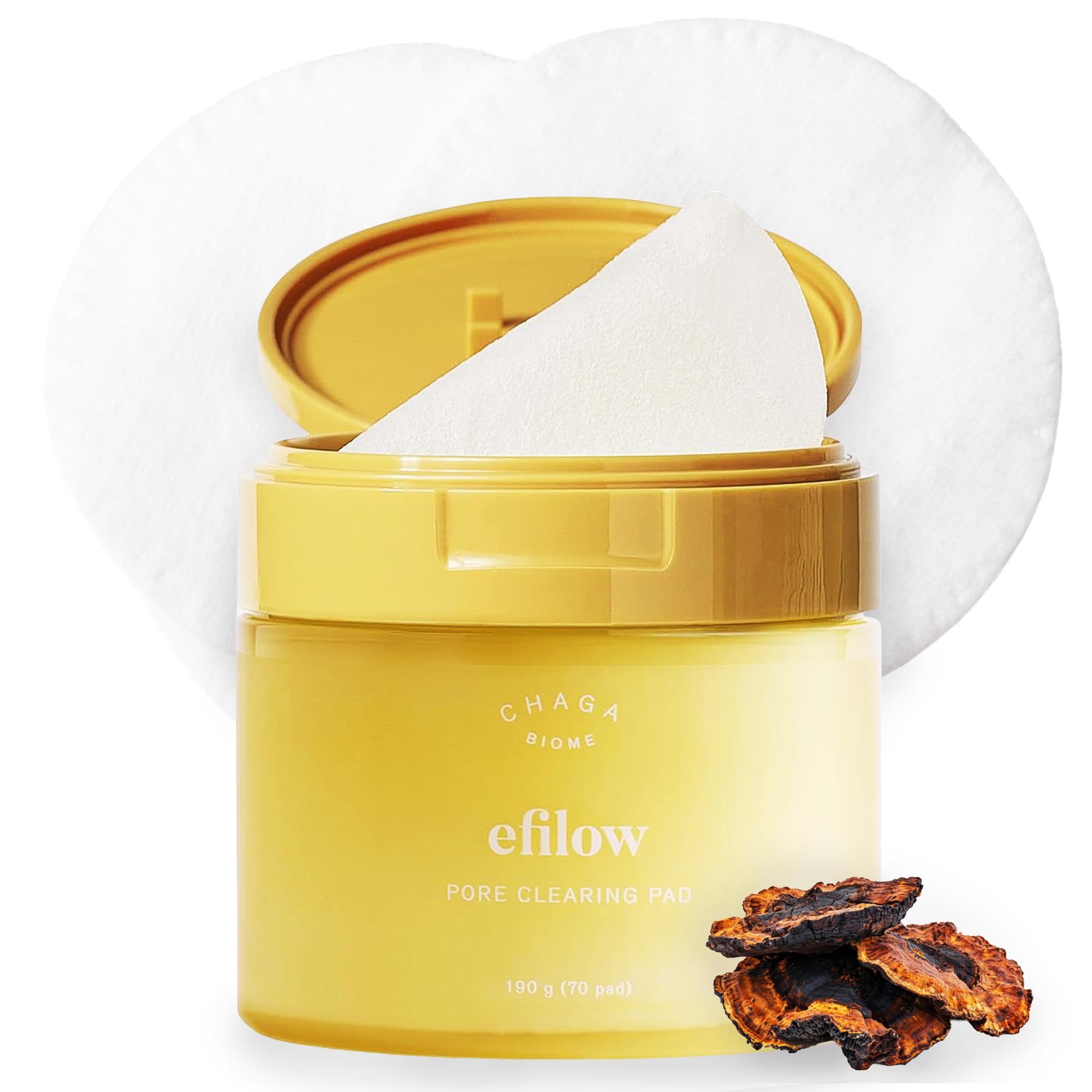 efilow Chaga Mushroom Biome Pore Clearing Pad Vegan Facial Exfoliating Toner Pads with AHA BHA PHA LHA 70 Pads 190g