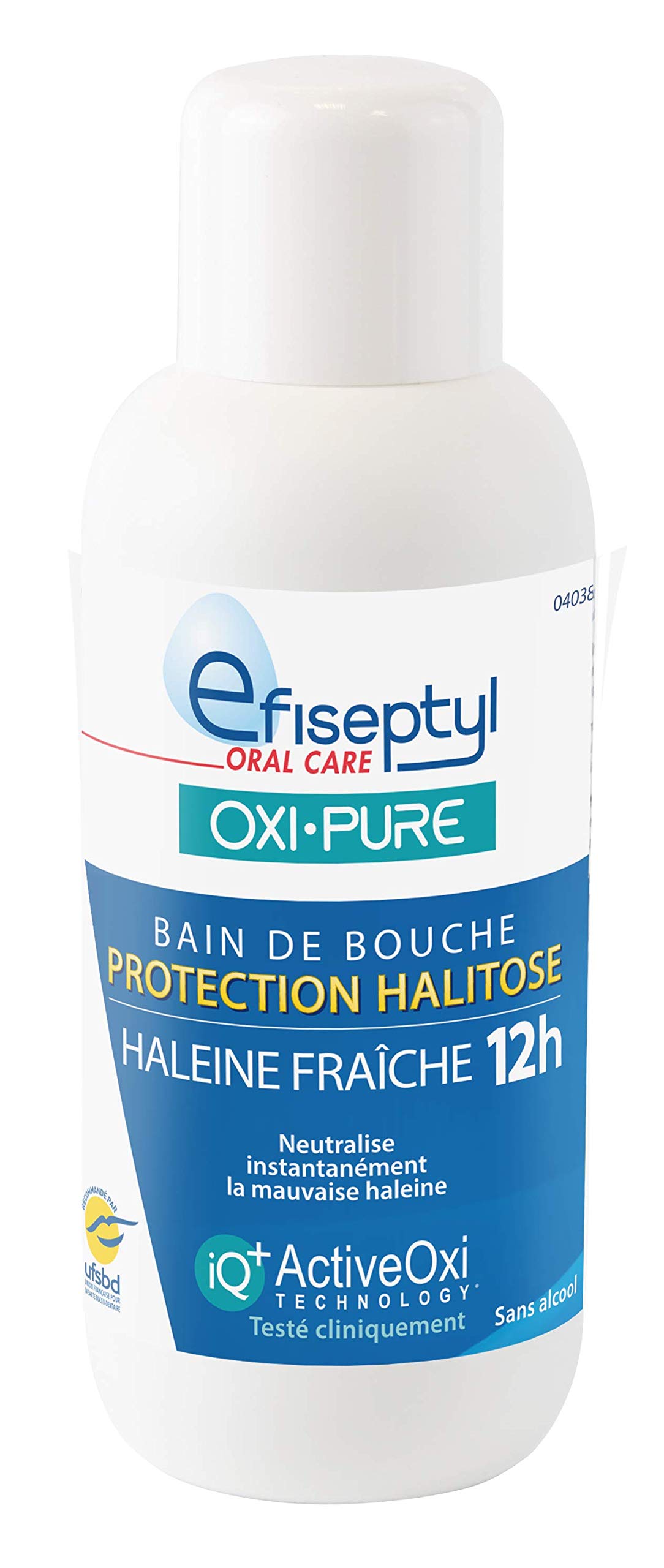Thanks to patented iQ ActiveOxi technology, Efiseptyl Oxi-Pure Halitosis Protection Toothpaste: Immediately eliminates bad breath by neutralizing odor-causing substances (VCS) rather than masking them Protects teeth and gums by acting on bacteria to help prevent plaque, cavities, and gum problems Clinically tested, immediate 12-hour effectiveness against bad breath Restores the natural whiteness of teeth by gently removing organic stains. INGREDIENTS AQUA, TRISODIUM PHOSPHATE, SODIUM MONOFLUOROPHOSPHATE, POLYSORBATE 20, CITRIC ACID, SODIUM CHLORITE, PEG-60 HYDROGENATED CASTOR OIL, AROMA, SODIUM BICARBONATE, MENTHOL, SODIUM SACCHARIN DIRECTIONS Twice a day, before or after brushing. Fill the cap with 15 ml of solution. Hold in the mouth for 30 seconds. Do not rinse with water after use. SAFETY WARNING Do not swallow. Not suitable for children under 6 years of age. See moreEFISEPTYL Oxi-Pure Bain de Bouche Protection Halitose Haleine Fraîche 12h Efficacité Prouvée 500 ml - Lot de 3DESCRIPTION DU PRODUIT DESCRIPTION DU PRODUIT Grâce à la technologie brevetée iQ ActiveOxi, le Dentifrice Protection Halitose Oxi-Pure d'Efiseptyl: Elimine immédiatement la mauvaise haleine en neutralisant les substances malodorantes (CSV) plutôt qu'en les masquant Protège les dents et les gencives en agissant sur les bactéries pour aider à prévenir la plaque, les caries et les problèmes de gencives Efficacité immédiate, testée cliniquement, pour une durée de 12h contre la mauvaise haleine Restaure la blancheur naturelle des dents en éliminant en douceur les taches organiques. INGRÉDIENTS AQUA, TRISODIUM PHOSPHATE, SODIUM MONOFLUOROPHOSPHATE, POLYSORBATE 20, CITRIC ACID, SODIUM CHLORITE, PEG-60 HYDROGENATED CASTOR OIL, AROMA, SODIUM BICARBONATE, MENTHOL, SODIUM SACCHARIN MODE D'EMPLOI 2 fois par jour, avant ou après le brossage. Remplissez le bouchon avec 15 ml de solution. Conserver dans la bouche pendant 30 secondes. Ne pas rincer à l'eau après utilisation. AVERTISSEMENT DE SÉCURITÉ Ne pas avaler. Ne convient pas aux enfants de moins de 6 ans. Voir plusContient Sodium Monofluorophosphate (230ppm Fluor). Précautions d'emploi: Ne pas avaler. Non adapté aux enfants de moins de 6 ans. Conserver à l'abri de la lumière.Précautions d'emploi: Ne pas avaler. Non adapté aux enfants de moins de 6 ans. Conserver à l'abri de la lumière. Conseils d'utilisation: 2 fois par jour, avant ou après le brossage. Remplir le bouchon de 15ml de solution. Gardez en bouche pendant 30 secondes. Ne pas rincer avec de l'eau après utilisation.