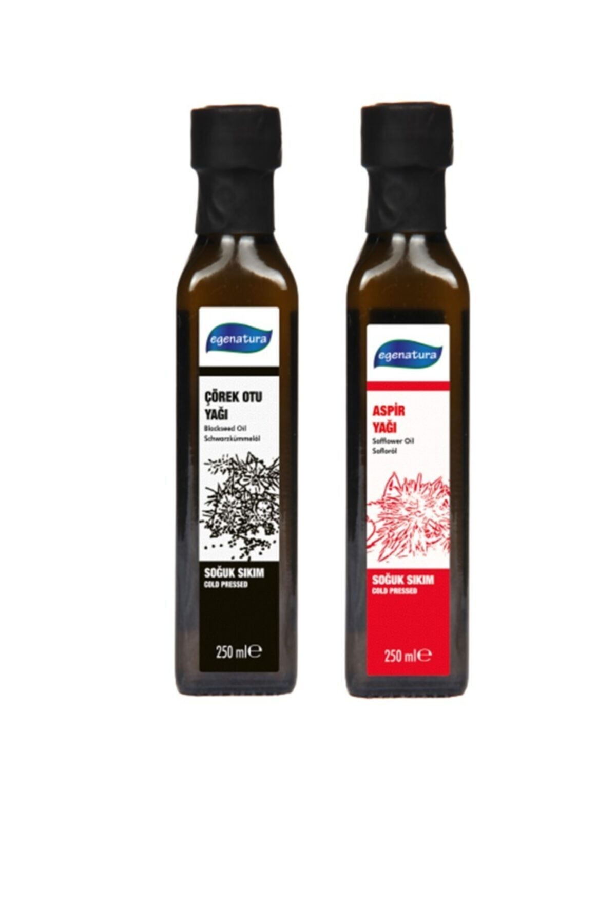 egenatura Black Cumin Oil 250 Ml + Safflower Oil 250 Ml - Cold Pressed & Glass Bottle