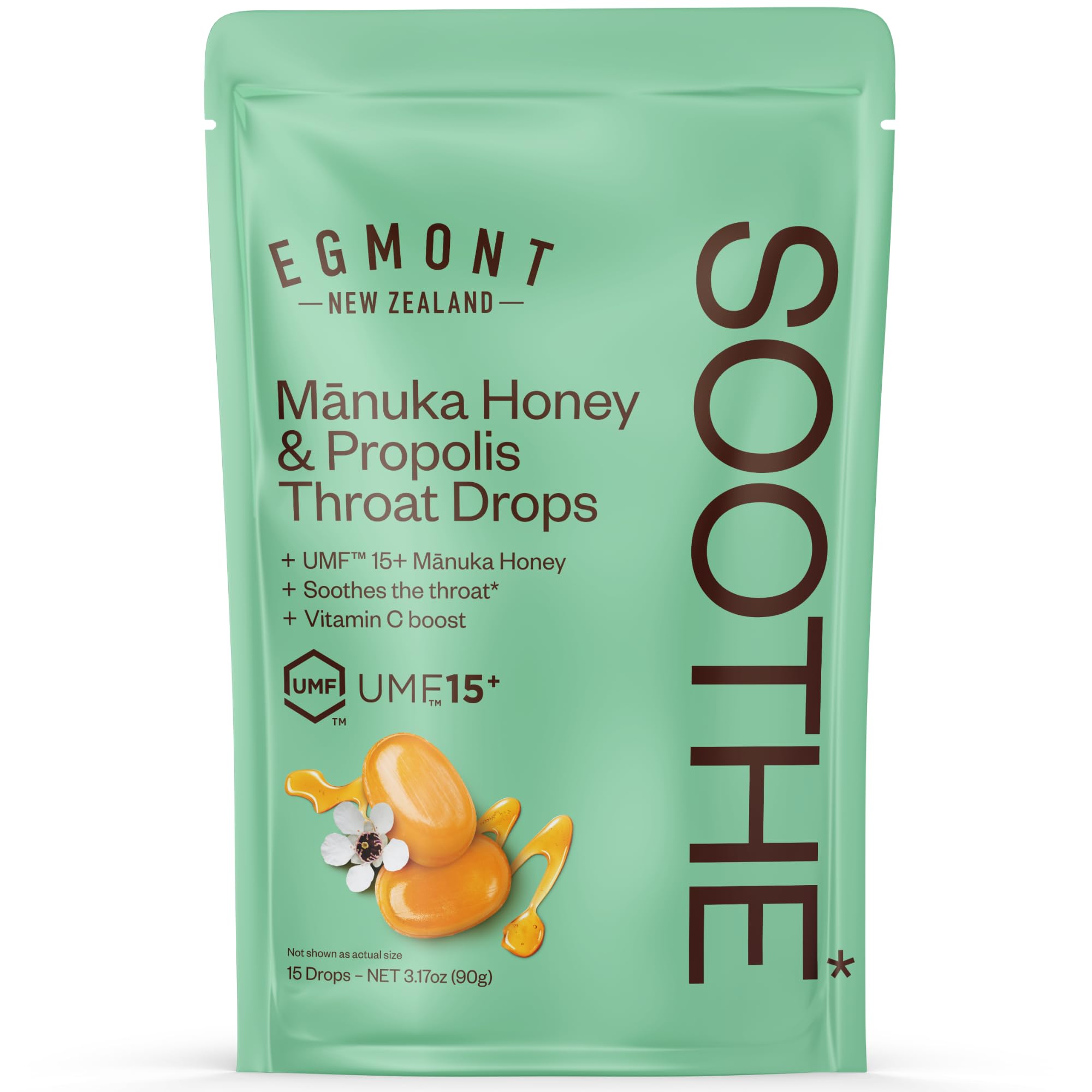 Egmont Honey Manuka Honey & Propolis Throat Drops 15 Count | UMF 15+ New Zealand Honey with Vitamin C | Natural Soothing Relief On-the-Go