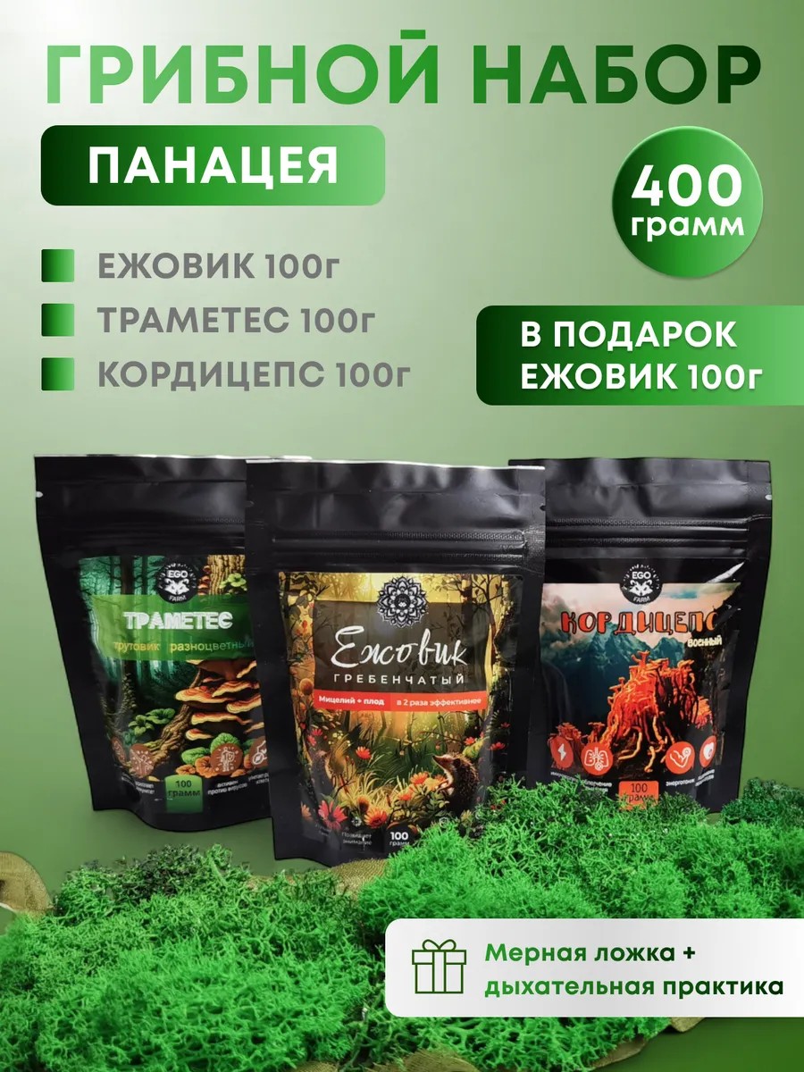 Эго-Фарм Грибной набор Панацея Ежовик, Кордицепс и Траметес по 100 г