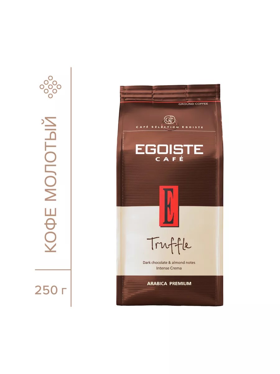 В составе EGOISTE Truffle — 100%-ная премиальная бразильская арабика, которая подарила этому моносорту вкус настоящих французских конфет с характерными для них нотами тёмного шоколада и молотого миндаля.