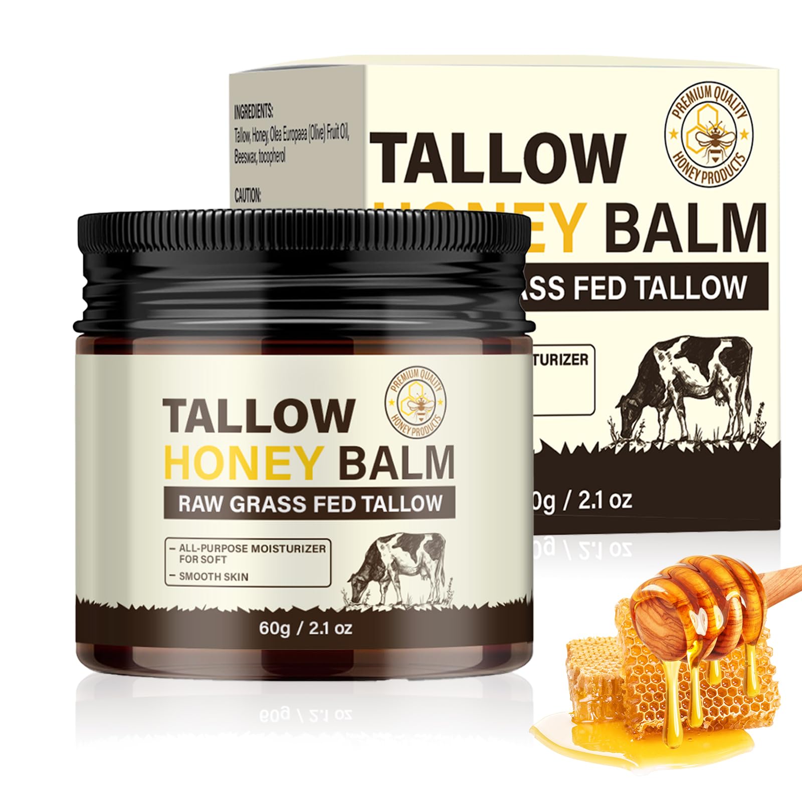 Bee venom ointment for the skin: with high-quality bee venom and beeswax of natural origin, this ointment helps relieve skin irritations and regenerate the skin. Ideal for dry skin, joint pain and muscle tension. It is quickly absorbed without leaving any greasy residue. Ideal for face and body. Unscented and without artificial additives – suitable for sensitive skin.Widely used: Bee venom cream suitable for all body parts, including face, neck, chin, back, armpits, fingers or legs. Make your skin cleaner and smoother than ever before. Suitable for commuters, students, sports enthusiasts and retirees. Simple and practical: bee venom skin care cream, simply apply gently to the skin, massage in completely and absorb. Portable design, easy to carry, can be used anytime, anywhere. Versatile skin care: Our beef tallow honey cream not only provides anti-inflammatory and soothing properties, but also supports collagen production. It increases skin elasticity, reduces wrinkles and makes the skin smooth and radiant. Thanks to the natural ingredients, this cream is perfect for daily use and also suitable as a gift for your loved one. Strengthens the skin barrier: the beef tallow honey cream strengthens the skin barrier and helps relieve skin redness and sensitivities. This mild sebum cream contains only natural ingredients such as honey and beeswax, which help the skin to regenerate its natural protective function and restore the skin from within. It is safe and suitable for all skin types. Moisturizing and anti-aging: our beef tallow honey cream nourishes and hydrates your skin sustainably. The beef tallow from grass-fed animals combined with high-quality honey provides your skin with deep moisture and at the same time prevents skin aging. Ideal for sensitive skin - perfume-free and quickly absorbed, without leaving a greasy residue.Bijenwas en rundertalg balsem voor de huid, natuurlijk rundertalg van met gras gevoerde dieren met honing, natuurlijke remedie voor huidverzorging, ontstekingen en gewrichtspijn Bijvenom zalf voor de huid: met hoogwaardige bijenvenom en bijenwas van natuurlijke oorsprong, helpt deze zalf huidirritaties te verlichten en de huid te regenereren. Ideaal voor droge huid, gewrichtspijn en spierspanning. Het trekt snel in zonder vettige resten achter te laten. Ideaal voor gezicht en lichaam. Ongeparfumeerd en zonder kunstmatige toevoegingen – geschikt voor de gevoelige huid.Veel gebruikt: crème voor bijengif geschikt voor alle lichaamsdelen, inclusief gezicht, hals, kin, rug, oksels, vingers of benen. Maak je huid schoner en gladder dan ooit tevoren. Geschikt voor pendelaars, studenten, sportliefhebbers en gepensioneerden. Eenvoudig en praktisch: bijengift huidverzorgingscrème, eenvoudig zacht op de huid aanbrengen, volledig inmasseren en absorberen. Draagbaar ontwerp, gemakkelijk mee te nemen, kan altijd en overal worden gebruikt. Veelzijdige huidverzorging: onze rundertalg honingcrème biedt niet alleen ontstekingsremmende en kalmerende eigenschappen, maar ondersteunt ook de collageenproductie. Het verhoogt de huidelasticiteit, vermindert rimpels en maakt de huid glad en stralend. Dankzij de natuurlijke ingrediënten is deze crème perfect voor dagelijks gebruik en ook geschikt als cadeau voor je geliefde. Versterkt de huidbarrière: de rundertalg honingcrème versterkt de huidbarrière en helpt roodheid van de huid en gevoeligheden te verlichten. Deze milde talgcrème bevat alleen natuurlijke ingrediënten zoals honing en bijenwas, die de huid helpen om zijn natuurlijke beschermende functie te regenereren en de huid van binnenuit te herstellen. Het is veilig en geschikt voor alle huidtypes. Hydraterend en anti-aging: onze rundertalg honingcrème verzorgt en hydrateert je huid duurzaam. Het rundertalg van met gras gevoerde dieren gecombineerd met hoogwaardige honing verzorgt je huid diep vocht en voorkomt tegelijkertijd huidveroudering. Ideaal voor de gevoelige huid – zonder parfum en trekt snel in, zonder vettige resten achter te laten.