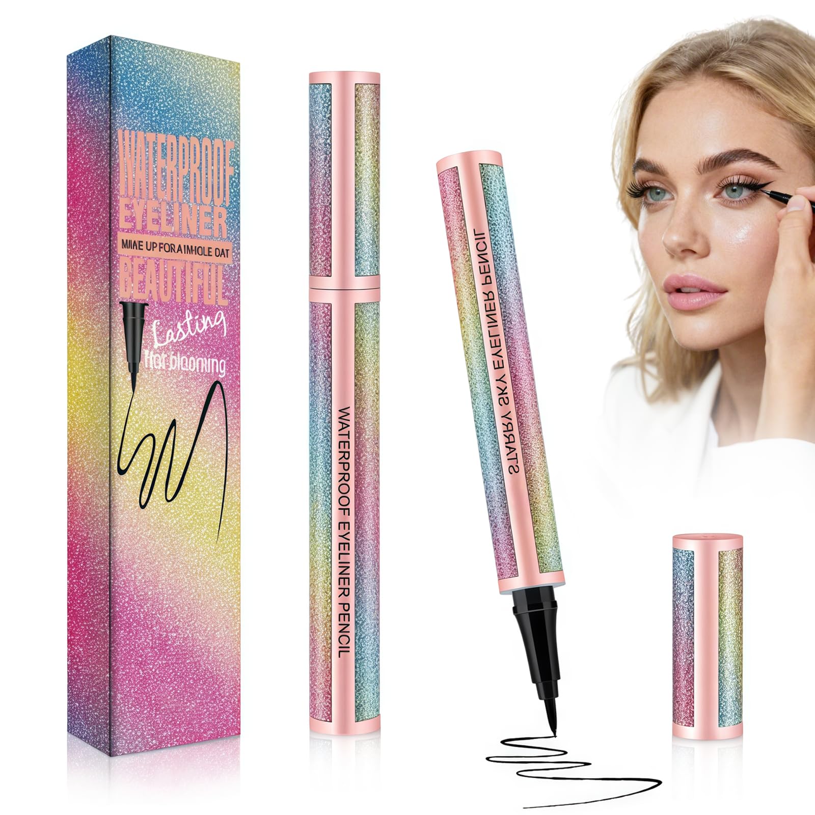 Product features: Liquid eyeliner – easy to use: effortless application with even color intensity. Does not dry out. Waterproof and smudge-proof: lasts all day - even in sweat, rain or tears. Long-lasting results: no need to put on – for a perfect look from morning to evening. Ultra-precise felt tip: Ultra-thin tip for complete control – ideal for razor-fine or dramatic lines. Artistic look: Create flawless, clean lines for subtle day looks or expressive evening makeup. Eye Enhancement: Instantly make your eyes look bigger, more expressive and more beautiful. Perfect addition to any make-up style: classic, glamorous or creative – this eyeliner always fits. Instructions for use: Draw a diagonal line from the outer corner of the eye inward to form the wing tip. Connect the line to the upper lash line from the inner corner of the eye. For particularly precise lines: use an angled brush or a cotton swab with makeup remover to clean edges. Delivery contents: 1 × liquid eyeliner blackPerfect Eye Makeup GiftV: A delicate and beautiful gift for mother, wife, sisters, lovers, family and friends for Valentine's Day, Birthday, Anniversary, Mother's Day, Thanksgiving, Halloween, Christmas and other important celebrations. Liquid Black Eyeliner: The waterproof eyeliner with precise tip is flexible and easy to use, easy to apply along the upper or lower lash line, after drawing the eyeliner, dries quickly and lasts all day. Portable and easy to use, your morning routine becomes a breeze. It is good for parties or other situations, small round bottle for easy carrying, necessary products for women's makeup. You can quickly put on makeup during any break. Waterproof and Smudge-proof: Special formula, 24 hours waterproof and smudge-proof, resistant to tears, sweat and moisture, dries quickly, does not fade, no sticking. It stays in place even with moisture, sweat or tears. Can be used for all occasions in daily life, parties, sports, pool parties, makeup shows, live performances and as wedding makeup. Helps you create mesmerizing eyes. Eyeliner Waterproof Black: The liquid eyeliner is made of black toner, smooth and easy to color, so you can smoothly complete the beautiful eye line.Waterbestendige eyeliner, zwarte vloeibare eyeliner, anti-modale formule, zacht, make-upcadeau voor vrouwen en meisjes (zwart) Producteigenschappen: Vloeibare eyeliner – eenvoudig in gebruik: moeiteloos aan te brengen met gelijkmatige kleurintensiteit. Droogt niet uit. Waterdicht en veegbestendig: houdt de hele dag – ook bij zweet, regen of tranen. Langdurig resultaat: geen aantrekken nodig – voor een perfecte look van 's ochtends tot 's avonds. Ultranauwkeurige viltpunt: Ultradunne punt voor volledige controle – ideaal voor flinterfijne of dramatische lijnen. Artistieke look: maak onberispelijke, strakke lijnen voor subtiele daglooks of expressieve avondmake-up. Oogbenadrukking: laat je ogen er onmiddellijk groter, expressiever en mooier uitzien. Perfecte aanvulling op elke make-upstijl: klassiek, glamoureus of creatief – deze eyeliner past altijd. Gebruiksaanwijzing: Trek een diagonale lijn van de buitenste ooghoek naar binnen om de vleugelpunt te vormen. Verbind de lijn met de bovenste wimperlijn vanuit de binnenste ooghoek. Voor bijzonder nauwkeurige lijnen: gebruik een schuine borstel of een wattenstaafje met make-upverwijderaar om randen schoon te maken. Inhoud levering: 1 × vloeibare eyeliner zwartPerfect oogmake-up geschenkV: een delicaat en mooi cadeau voor moeder, vrouw, zussen, geliefden, familie en vrienden voor Valentijnsdag, verjaardag, jubileum, Moederdag, Thanksgiving, Halloween, Kerstmis en andere belangrijke feesten. Vloeibare zwarte eyeliner: de waterdichte eyeliner met nauwkeurige tip is flexibel en eenvoudig te bedienen, gemakkelijk aan te brengen langs de bovenste of onderste wimperkrans, na het tekenen van de eyeliner, droogt snel en blijft de hele dag zitten. Draagbaar en eenvoudig te gebruiken: je ochtendroutine wordt kinderspel. Het is goed voor feestjes of andere situaties, kleine ronde fles voor eenvoudig dragen, noodzakelijke producten voor de make-up van vrouwen. Je kunt je in elke pauze snel opmaken. Waterdicht en veegbestendig: speciale formule, 24 uur waterdicht en veegvast, bestand tegen tranen, zweet en vocht, droogt snel, vervaagt niet, geen kleving. Het blijft zelfs bij vocht, zweet of tranen op zijn plaats. Kan worden gebruikt voor alle gelegenheden in het dagelijks leven, feestjes, sport, zwembadfeesten, make-upshows, live optredens en als bruiloftsmake-up. Helpt je betoverende ogen te creëren. Eyeliner waterdicht zwart: de vloeibare eyeliner is gemaakt van zwarte toner, glad en gemakkelijk in te kleuren, zodat je de mooie ooglijn glad kunt afronden.