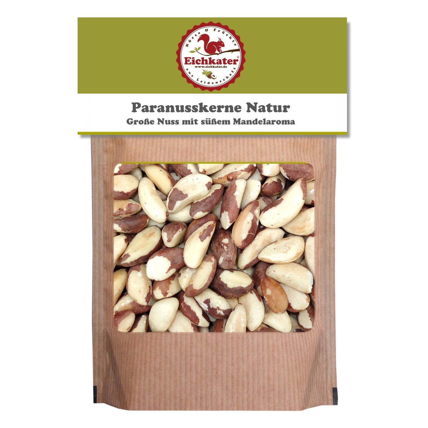 Paranese nuts are noticeable due to their idiosyncratic shape.Their harvest is elaborate because they can only be collected wildly.To this day, cultivation of the paran's tree has not been successful.The almond-sweet tasting paranese nuts are therefore something special-which can be enjoyed raw as nibbles or refine muesli, baked goods and dishes as an ingredient.Eichbel guarantees a high quality of all nut and fruit products through the goods cover with selected suppliers or by direct reference to the products from the producer.All articles, Eichkater is a small manufacturing operation, are compiled and packaged in Germany and the ingredients from nuts and fruits are hand -picked. Ingredients / ingredients (Note: Allergens in Craonal Came) Paranese nuclei Nature Nutritional information: condensing 1 in KJ: 2858;Boil value 2 in Kcal: 693;Fat: 67.1g;Fatty acids saturated of them: 16.1g;Carbohydrates: 4.2g;Of which sugar: 2.3g;Fiber: 7.5g;Protein: 14.3g;Salt: 0.01g Warnings Important note: The product can contain traces of other nuts such as peanuts and natural foreign material.When consuming nuts, swallowing is possible.Pay attention to your children! More Eichkater is a small family factory in the state of Brandenburg and stands for very high quality and freshness of all nuts, dried fruit and nut mixes.The goods are covered with selected suppliers and in the direct reference to producers who have convinced the Eichkater team with the quality of the products.Your order is picked up handpicked after the order receipt.The expiry date is at least 6 months.Our aroma protection packaging is re -lockable and thus protects the freshness and aroma of the nuts and dried fruit.Paranese nuts contain valuable protein, unsaturated and polyunsaturated fatty acids, magnesium, phosphorus, potassium, calcium and selenium.The nuts of the paranese are interesting for daily diet due to the high content of B vitamins, vitamin E and vitamin C.Paranese are considered the largest, vegetable selenium suppliers.Paranese nuts taste slightly almond-like-sweet and belong to the Christmas plate for most people.However, paranese are available all year round.Paranese eses come almost exclusively from game collections, since the paranese tree is unsuitable for plantation planting.Paranese nut Nature of Eichkater, selenium in nut with cute almond aromas - parannings taste sweet and have a fine almond aroma.The nut core is large and crisp in the bite.A delicious nibble. Paranusskerne fallen durch ihre eigenwillig geformte Schale auf. Ihre Ernte gestaltet sich aufwendig, da diese nur wild gesammelt werden können. Eine Kultivierung des Paranussbaumes ist bis heute nicht gelungen. Die mandelartig-süßlich schmeckenden Paranusskerne sind daher etwas Besonderes – die roh als Knabberei genossen können oder als Zutat Müslis, Backwaren und Speisen verfeinern. Eichkater garantiert eine hohe Qualität aller Nuss- und Fruchtprodukte durch den Warenbezug bei ausgewählten Lieferanten oder durch den Direktbezug der Produkte vom Erzeuger. Alle Artikel, Eichkater ist ein kleiner Manufakturbetrieb, werden in Deutschland zusammengestellt sowie verpackt und die Zutaten aus Nüssen und Früchten sind handverlesen. INHALTSSTOFFE / ZUTATEN (Hinweis: Allergene in Großschreibung) PARANUSSKERNE Natur Nährwertangaben: Brennwert 1 in kJ: 2858; Brennwert 2 in kcal: 693; Fett: 67,1g; davon gesättigte Fettsäuren: 16,1g; Kohlenhydrate: 4,2g; davon Zucker: 2,3g; Ballaststoffe: 7,5g; Eiweiß: 14,3g; Salz: 0,01g WARNHINWEISE Wichtiger Hinweis: Das Produkt kann Spuren von anderen Nüssen wie z.B. Erdnüsse und natürliches Fremdmaterial enthalten. Beim Verzehr von Nüssen ist ein Verschlucken möglich. Achten Sie auf Ihre Kinder! MehrEichkater ist eine kleine Familienmanufaktur im Land Brandenburg und steht für eine sehr hohe Qualität und Frische aller Nüsse, Trockenfrüchte und Nussmischungen. Der Warenbezug erfolgt bei ausgesuchten Lieferanten und im Direktbezug bei Erzeugern, welche das Team von Eichkater durch die Qualität der Produkte überzeugt haben. Die Kommissionierung Ihrer Bestellung erfolgt handverlesen nach Bestelleingang. Das Haltbarkeitsdatum beträgt mindestens 6 Monaten. Unsere Aromaschutzverpackung ist wiederverschließbar und schützt so die Frische und das Aroma der Nüsse und Trockenfrüchte. Paranusskerne enthalten wertvolles Protein, ungesättigte und mehrfach ungesättigte Fettsäuren, Magnesium, Phosphor, Kalium, Calcium und Selen. Die Nüsse der Paranuss sind wegen dem hohen Gehaltes an B-Vitaminen, Vitamin E und Vitamin C für die tägliche Ernährung interessant. Paranüsse gelten als die größten, pflanzlichen Selen-Lieferanten. Paranusskerne schmecken leicht mandelartig-süßlich und gehören bei den meisten Menschen auf den Weihnachtsteller. Paranüsse sind jedoch das ganze Jahr erhältlich. Paranüsse stammen fast ausschließlich aus Wildsammlungen, da der Paranussbaum für eine Plantagenpflanzung ungeeignet ist. Paranusskerne Natur von Eichkater, Selen in Nuss mit süßen Mandelaromen - Paranüsse schmecken süß und haben ein feines Mandelaroma. Der Nusskern ist groß und knackig im Biss. Eine köstliche Knabberei.Eichkater Paranüsse groß & ganz 1er-Pack (1x1000g) Knackig,Süß 1x1000 g