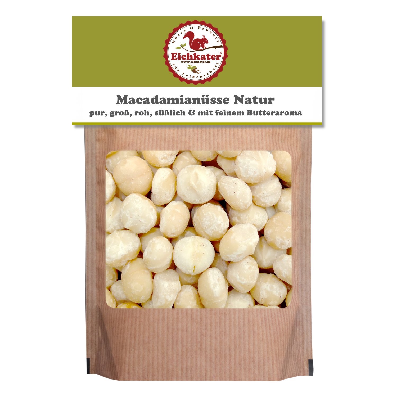 Macadamia nuts nature are available in 6 other packaging sizes.Macadamia nuts are the queens under the nuts.Your slightly sweet, nutty taste is underlined by a light buttern note.It fits the aperitif as a special snack and is a tasty alternative to chips and Co. Eichkater guarantees a high quality of all nut and fruit products by means of the goods with selected suppliers or by direct reference to the products from the producer.All articles, Eichkater is a small manufacturing operation, are compiled and packaged in Germany and the ingredients from nuts and fruits are hand -picked. Ingredients / ingredients (Note: Allergens in Craonal Came) MacadamiaSünt Natur Nutritional information: condensing 1 in KJ: 3040;Boil value 2 in Kcal: 724;Fat: 72.2g;saturated fatty acids: 1.5g;Carbohydrates: 8g;Of which sugar: 4.3g;Fillers: 6g;Protein: 11.2g;Salt: 0.005g Warnings Important note: The product can contain traces of other nuts such as peanuts and natural foreign material.When consuming nuts, swallowing is possible.Pay attention to your children. More Eichkater is a small family factory in the state of Brandenburg and stands for very high quality and freshness of all nuts, dried fruit and nut mixes.The goods are covered with selected suppliers and in the direct reference to producers who have convinced the Eichkater team with the quality of the products.Your order is picked up handpicked after the order receipt.The expiry date is at least 6 months.Our aroma protection packaging is re -lockable and thus protects the freshness and aroma of the nuts and dried fruit.The indigenous people of Australia, the Aborigines, use the Macadamia as a fat and protein supplier in the diet.Macadamia nuts have a high proportion of unsaturated fatty acids, Macadamia nuts are rich in B vitamins, iron, calcium, magnesium and phosphorus.There are also traces of zinc and vitamin E in the crisp nuts.A main cultivation country for Macadamian nuts is Australia.The Balg fruits of the Macadamiabaum, which sit spherically on the branches.contain the seeds with the hard sperm shell-the Macadamia nuts.Only two types of Macadamia are cultivated for commercial trade: Macadamia Tetraphylla and Macadamia Ternifolia.Only these two types can be edited for humans.Eichkater MacadamiaSüd Natur are large, raw nuts that are undetected and unsalted.The nuts have a slightly sweet buttered aroma, crisp and fresh. Macadamianüsse Natur sind in 6 weiteren Verpackungsgrößen lieferbar. Macadamia Nüsse sind die Königinnen unter den Nusssorten. Ihr leicht süßlicher, nussiger Geschmack wird durch eine leichte Butternote unterstrichen. Sie passt als besonderer Snack zum Aperitif und ist eine schmackhafte Alternative zu Chips und Co. Eichkater garantiert eine hohe Qualität aller Nuss- und Fruchtprodukte durch den Warenbezug bei ausgewählten Lieferanten oder durch den Direktbezug der Produkte vom Erzeuger. Alle Artikel, Eichkater ist ein kleiner Manufakturbetrieb, werden in Deutschland zusammengestellt sowie verpackt und die Zutaten aus Nüssen und Früchten sind handverlesen. INHALTSSTOFFE / ZUTATEN (Hinweis: Allergene in Großschreibung) MACADAMIANÜSSE Natur Nährwertangaben: Brennwert 1 in kJ: 3040; Brennwert 2 in kcal: 724; Fett: 72,2g; davon gesättigte Fettsäuren: 1,5g; Kohlenhydrate: 8g; davon Zucker: 4,3g; Ballaststoffe: 6g; Eiweiß: 11,2g; Salz: 0,005g WARNHINWEISE Wichtiger Hinweis: Das Produkt kann Spuren von anderen Nüssen wie z.B. Erdnüsse und natürliches Fremdmaterial enthalten. Beim Verzehr von Nüssen ist ein Verschlucken möglich. Achten Sie auf Ihre Kinder. MehrEichkater ist eine kleine Familienmanufaktur im Land Brandenburg und steht für eine sehr hohe Qualität und Frische aller Nüsse, Trockenfrüchte und Nussmischungen. Der Warenbezug erfolgt bei ausgesuchten Lieferanten und im Direktbezug bei Erzeugern, welche das Team von Eichkater durch die Qualität der Produkte überzeugt haben. Die Kommissionierung Ihrer Bestellung erfolgt handverlesen nach Bestelleingang. Das Haltbarkeitsdatum beträgt mindestens 6 Monaten. Unsere Aromaschutzverpackung ist wiederverschließbar und schützt so die Frische und das Aroma der Nüsse und Trockenfrüchte. Die Ureinwohner Australiens, die Aborigines, nutzen die Macadamia als Fett- und Eiweißlieferant in der Ernährung. Macadamianüsse haben einen hohen Anteil an ungesättigten Fettsäuren, Macadamianüsse sind reich an B-Vitaminen, Eisen, Calcium, Magnesium und Phosphor. Des Weiteren sind auch Spuren von Zink und Vitamin E in den knackigen Nüssen enthalten. Ein Hauptanbauland für Macadamianüsse ist Australien. Die Balgfrüchte des Macadamiabaums, die kugelförmig an den Zweigen sitzen. enthalten die Samen mit der harten Samenschale – die Macadamia-Nüsse. Für den kommerziellen Handel werden nur zwei Macadamia-Arten kultiviert: Macadamia tetraphylla und Macadamia ternifolia. Nur diese beiden Arten sind für den Menschen genießbar. Eichkater Macadamianüsse Natur sind große, rohe Nüsse, welche ungeröstet und ungesalzen angeboten werden. Die Nüsse haben ein leicht süßliches Butteraroma, knackig und frisch.Eichkater Macadamia Die Große roh natur 1er-Pack (1x500g) Knackig,Ungesalzen 1x500 g