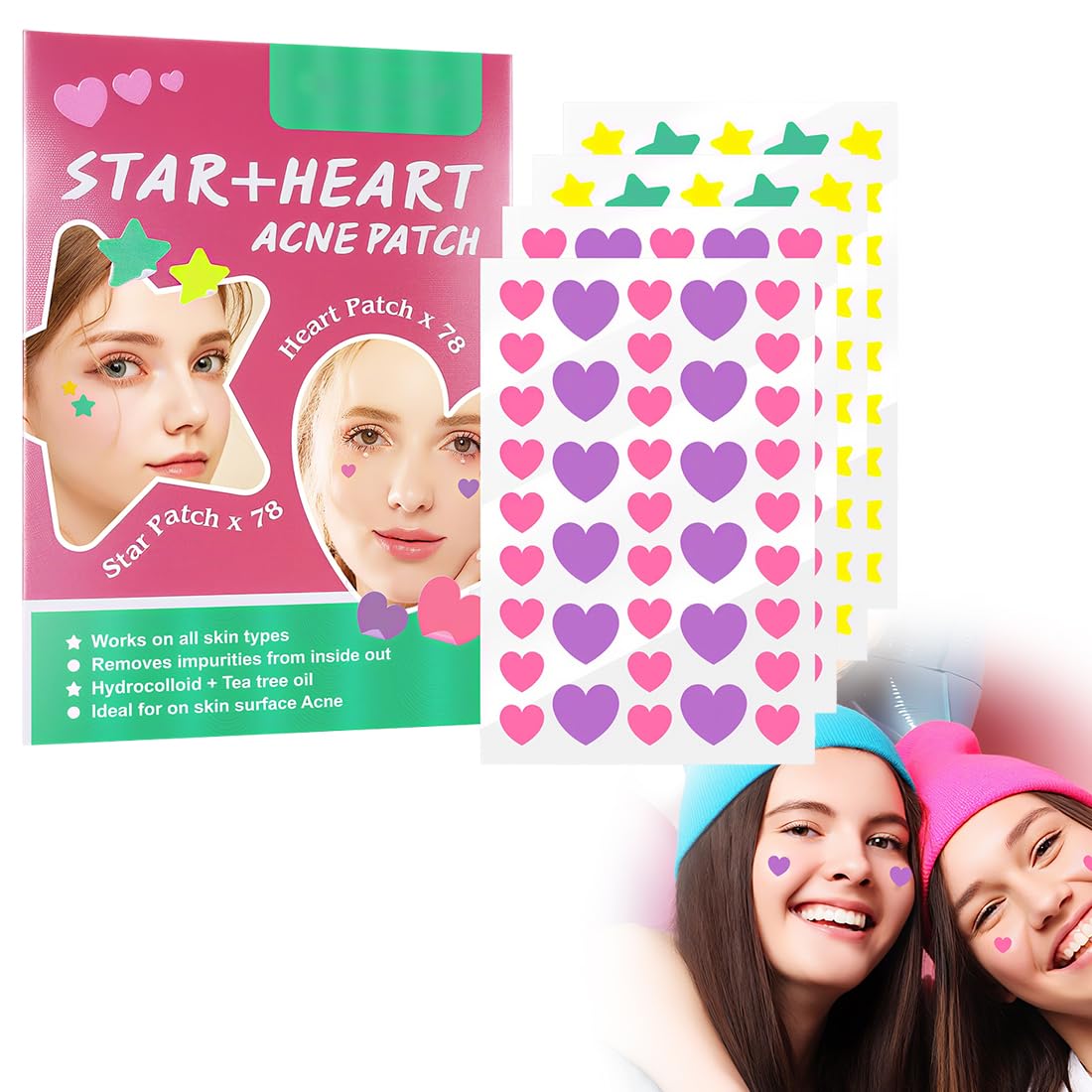 Package list: the package contains 4 pieces in total 156 pieces, and the star and love stickers include 4 colors and different sizes, cover different button sizes, and the quantity is enough Safe Materials: The main ingredient of star acne patches is a hydrocolloid material that removes sebum and protects the skin, and they contain no dyes, perfumes or harsh ingredients Soothes the skin: Suitable for all skin types, these patches absorb pus overnight and accelerate skin healing, improving acne and blackheads Breathable and Waterproof: These patches are waterproof and after washing your face, simply apply the patches to the affected area and leave them on overnight to prevent impurities from entering the pimples Customer service: If you have any questions about our products, please feel free to contact us, we will reply you within 24 hoursCustomer service: If you have any questions about our products, please feel free to contact us, we will reply you within 24 hours. Breathable and Waterproof: These patches are waterproof and after washing your face, simply apply the patches to the affected area and leave them overnight to prevent impurities from entering the pimples. Soothes the skin: Suitable for all skin types, these patches absorb pus overnight and accelerate skin healing, improving acne and blackheads. Safe Materials: The main ingredient of star acne patches is a hydrocolloid material that removes sebum and protects the skin, and they contain no dyes, perfumes or harsh ingredients. Package list: The package contains 4 pieces in total 156 pieces, and the star and love stickers include 4 colors and different sizes, cover different button sizes, and the quantity is enough.4 vellen 156 stuks Acne-puistjes patches, Hydrocolloïde puistjes Star Patches Hydrocolloïde Patch Acne Puistje Anti-Acne Met Tea Tree Olie Salicylzuur Pakketlijst: het pakket bevat 4 stuks in totaal 156 stuks, en de ster- en liefdesstickers bevatten 4 kleuren en verschillende maten, bedekken verschillende knopmaten, en de hoeveelheid is voldoende Veilige materialen: het belangrijkste ingrediënt van steracnepleisters is een hydrocolloïde materiaal dat talg verwijdert en de huid beschermt, en ze bevatten geen kleurstoffen, parfums of agressieve ingrediënten Kalmeert de huid: Deze pleisters zijn geschikt voor alle huidtypes en absorberen 's nachts pus en versnellen de genezing van de huid, waardoor acne en mee-eters worden verbeterd Ademend en waterdicht: deze patches zijn waterdicht en na het wassen van je gezicht breng je de patches gewoon aan op het getroffen gebied en laat je ze een nacht inwerken om te voorkomen dat onzuiverheden in de puistjes terechtkomen Klantenservice: als je vragen hebt over onze producten, neem dan gerust contact met ons op, wij zullen je binnen 24 uur antwoordenKlantenservice: als je vragen hebt over onze producten, neem dan gerust contact met ons op, wij zullen je binnen 24 uur antwoorden. Ademend en waterdicht: deze patches zijn waterdicht en na het wassen van je gezicht breng je de patches gewoon aan op het getroffen gebied en laat je ze een nacht inwerken om te voorkomen dat onzuiverheden in de puistjes terechtkomen. Kalmeert de huid: Deze pleisters zijn geschikt voor alle huidtypes en absorberen 's nachts pus en versnellen de genezing van de huid, waardoor acne en mee-eters worden verbeterd. Veilige materialen: het belangrijkste ingrediënt van steracnepleisters is een hydrocolloïde materiaal dat talg verwijdert en de huid beschermt, en ze bevatten geen kleurstoffen, parfums of agressieve ingrediënten. Pakketlijst: het pakket bevat 4 stuks in totaal 156 stuks, en de ster- en liefdesstickers bevatten 4 kleuren en verschillende maten, bedekken verschillende knopmaten, en de hoeveelheid is voldoende.