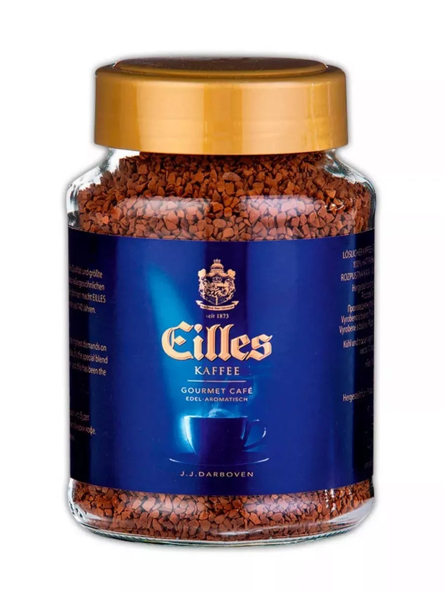 Eilles Gourmet Cafe Instant Кофе растворимый сублимированный 200 гр, в стеклянной банке. Для изготовления Eilles Gourmet Cafe Instant используют зерна самого высокого качества, которые обжаривают медленно при низкой температуре, что позволяет тщательно прожарить каждое зернышко. Эта особая обжарка обеспечивает наличие насыщенного вкуса с интенсивными нотками вишни. Приготовленный напиток имеет богатый пряный аромат, слегка ощутимую горчинку, оттенки фундука и темного хлеба в длительном послевкусии.