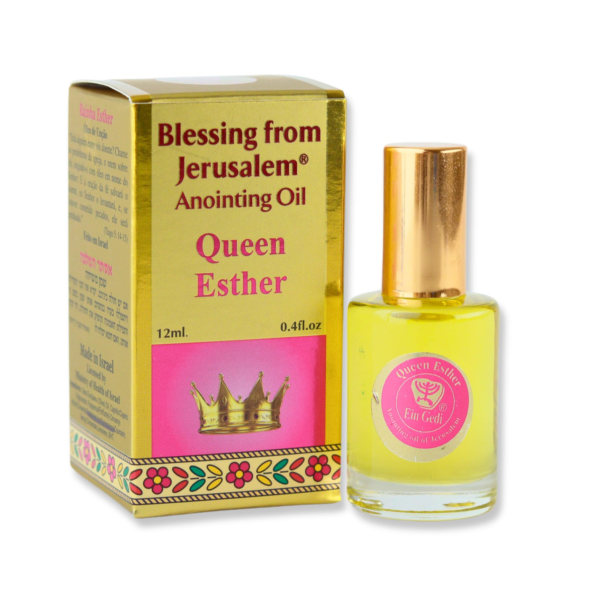 Ein Gedi Queen Esther Anointing Oil from the Blessing from Jerusalem Gold Collection is a Holy Land anointing oil inspired by the courage, grace, and favor shown in the story of Queen Esther. Scented with fragrances inspired by the Bible, this 12 ml 0.4 oz oil is prepared especially for moments of prayer, worship, and personal devotion, serving as a symbolic reminder of God's guidance, protection, and purpose over your life. Beautifully presented and easy to keep on hand, this anointing oil makes a meaningful spiritual gift for pastors, prayer groups, and believers who value Scripture-rooted traditions. Ideal for home prayer corners, Bible study gatherings, church services, and special occasions focused on intercession and spiritual renewal. For external use only not intended for consumption or medical use.
