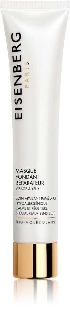 A cream mask with a melting, soft texture that instantly soothes and repairs. The Trio-Molecular Formula, Boswellia Serrata extract, and Raspberry leaf stem cell extract, with their antioxidant, anti-inflammatory, and DNA-protective properties, provide anti-aging, regenerating, and calming benefits. Natural Avocado and Sweet Almond oils, combined with Shea Butter, offer perfect hydration and comfort for sensitive skin. Visible soothing results from the very first application! Fragrance-free - Dye-free - Paraben-free. Clinical study conducted under dermatological and ophthalmological control. INGREDIENTS Aqua (Water), Dimethicone, Glycerin, Caprylic Capric Triglyceride, Cetearyl Alcohol, Isostearyl Alcohol, Glyceryl Stearate Citrate, Octyldodecanol, Butyrospermum Parkii (Shea) Butter, Persea Gratissima (Avocado) Oil, Prunus Amygdalus Dulcis (Sweet Almond) Oil, Rubus Idaeus Leaf Cell Culture, Boswellia Serrata Gum, Fagus Sylvatica Bud Extract, Chondrus Crispus Powder (Carrageenan), Lactis Proteinum (Whey Protein), Escin, Bacillus Ferment, Phospholipids, Beta-Sitosterol, Tocopherol, Ascorbyl Palmitate, Ascorbic Acid, Hydroxyethylcellulose, Ethylhexylglycerin Lactose, Pentadecalactone, Carbomer, Benzyl Alcohol, Lactic Acid, Propylene Glycol, Peg-8, Benzoic Acid, Potassium Sorbate, Citric Acid, Sodium Hydroxide, Phenoxyethanol, Disodium Edta. Fragrance Free, Colorant Free, Paraben FreeSoothes, repairs, regenerates, calms, provides hydration and comfort. Protects DNA, has antioxidant, anti-inflammatory and anti-aging properties.EISENBERG Masque Fondant Réparateur, 75 mlDESCRIPTION DU PRODUIT DESCRIPTION DU PRODUIT Un masque crème avec une texture fondante et douce qui apaise immédiatement et répare. La Formule Trio-Moléculaire , l'extrait de Boswellia Serrata et l'extrait de cellules souches de feuilles de Framboise aux propriétés anti-oxydantes, anti-inflammatoires et protectrices de l'ADN assurent une activité anti-âge, régénérante et calmante. Les huiles naturelles d'Avocat et d'Amande Douce associées au Beurre de Karité apportent une hydratation et un confort parfaits aux peaux sensibles. Résultat apaisant visible dès la première application ! Sans parfum - Sans colorant - Sans parabène Etude clinique menée sous contrôle dermatologique et ophtalmologique INGRÉDIENTS Aqua (Water), Dimethicone, Glycerin, Caprylic Capric Triglyceride, Cetearyl Alcohol, Isostearyl Alcohol, Glyceryl Stearate Citrate, Octyldodecanol, Butyrospermum Parkii (Shea) Butter, Persea Gratissima (Avocado) Oil, Prunus Amygdalus Dulcis (Sweet Almond) Oil, Rubus Idaeus Leaf Cell Culture, Boswellia Serrata Gum, Fagus Sylvatica Bud Extract, Chondrus Crispus Powder (Carrageenan), Lactis Proteinum (Whey Protein), Escin, Bacillus Ferment, Phospholipids, Beta-Sitosterol, Tocopherol, Ascorbyl Palmitate, Ascorbic Acid, Hydroxyethylcellulose, Ethylhexylglycerin, Lactose, Pentadecalactone, Carbomer, Benzyl Alcohol, Lactic Acid, Propylene Glycol, Peg-8, Benzoic Acid, Potassium Sorbate, Citric Acid, Sodium Hydroxide, Phenoxyethanol, Disodium Edta. Sans Parfum, Sans Colorant, Sans ParabèneApaise, répare, régénère, calme, apporte hydratation et confort. Protège l'ADN, possède une action anti-oxydante, anti-inflammatoire et anti-âge.