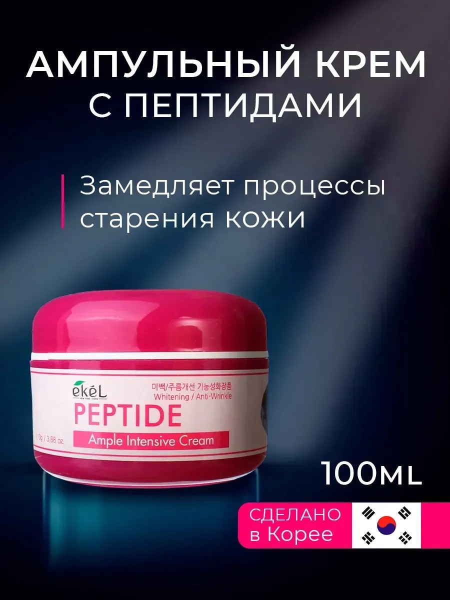 Ampole Intensive Cream Peptide Anti-Aging Face Cream with Peptides, 100g. This intensive ampoule face cream with peptides from the line of anti-aging whitening products has a light texture that quickly absorbs into the deep layers of the skin without leaving a sticky or greasy residue. Designed for intensive cell regeneration, this Korean anti-pigmentation cream provides a pronounced whitening, lifting, rejuvenating, moisturizing effect, and firmness from the first application. This Korean restorative cream instantly moisturizes, softens, and smoothes the skin, improves its tone, leaves it bright and fresh, and imparts a velvety, soft feel, making it suitable for use under makeup. Furthermore, the cream has a prolonged cumulative effect that helps preserve the youthfulness and beauty of the skin, improves its firmness and elasticity, strengthens the framework, tightens the facial contours, and slows the aging process. This nourishing cream is suitable for all mature skin types, including combination and very dry skin. This aloe-scented anti-aging cream contains the finest ingredients. To enhance its rejuvenating and other benefits, apply it several times a day. "Ample Intensive Cream Peptide" is a true gem. Thanks to its natural ingredients, this moisturizer will quickly relieve all skin problems. It leaves your skin smooth and nourished. Only natural ingredients are used in the production of Korean cosmetics, confirming the excellence of this product. This anti-aging cream is the gold standard in skincare quality, helping you maintain the youth and beauty of your skin even after 45 or 50 years. Please note! This cream is original and unique.