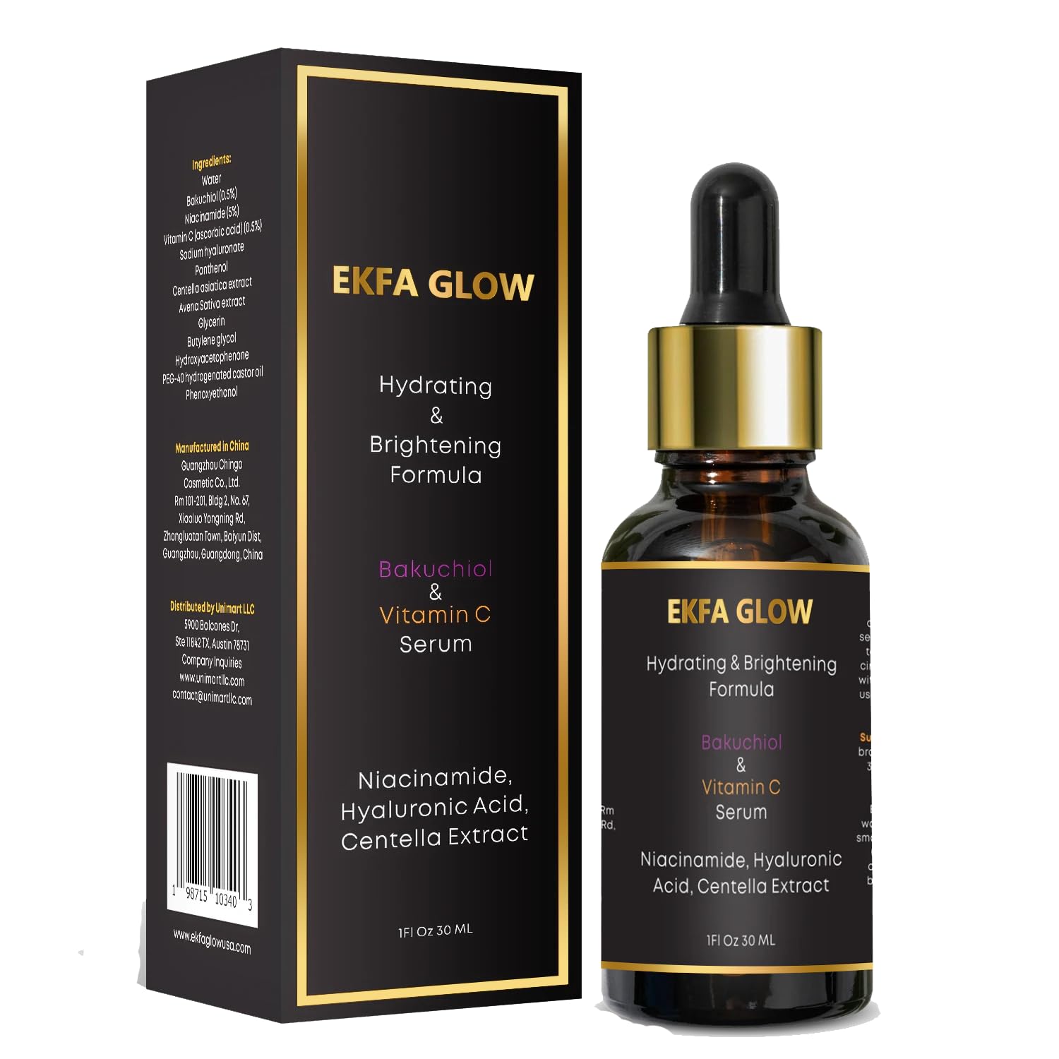 Ekfa Glow Bakuchiol Face Serum with Niacinamide & Vitamin C Fragrance-Free Serum for Smooth & Radiant Looking Skin