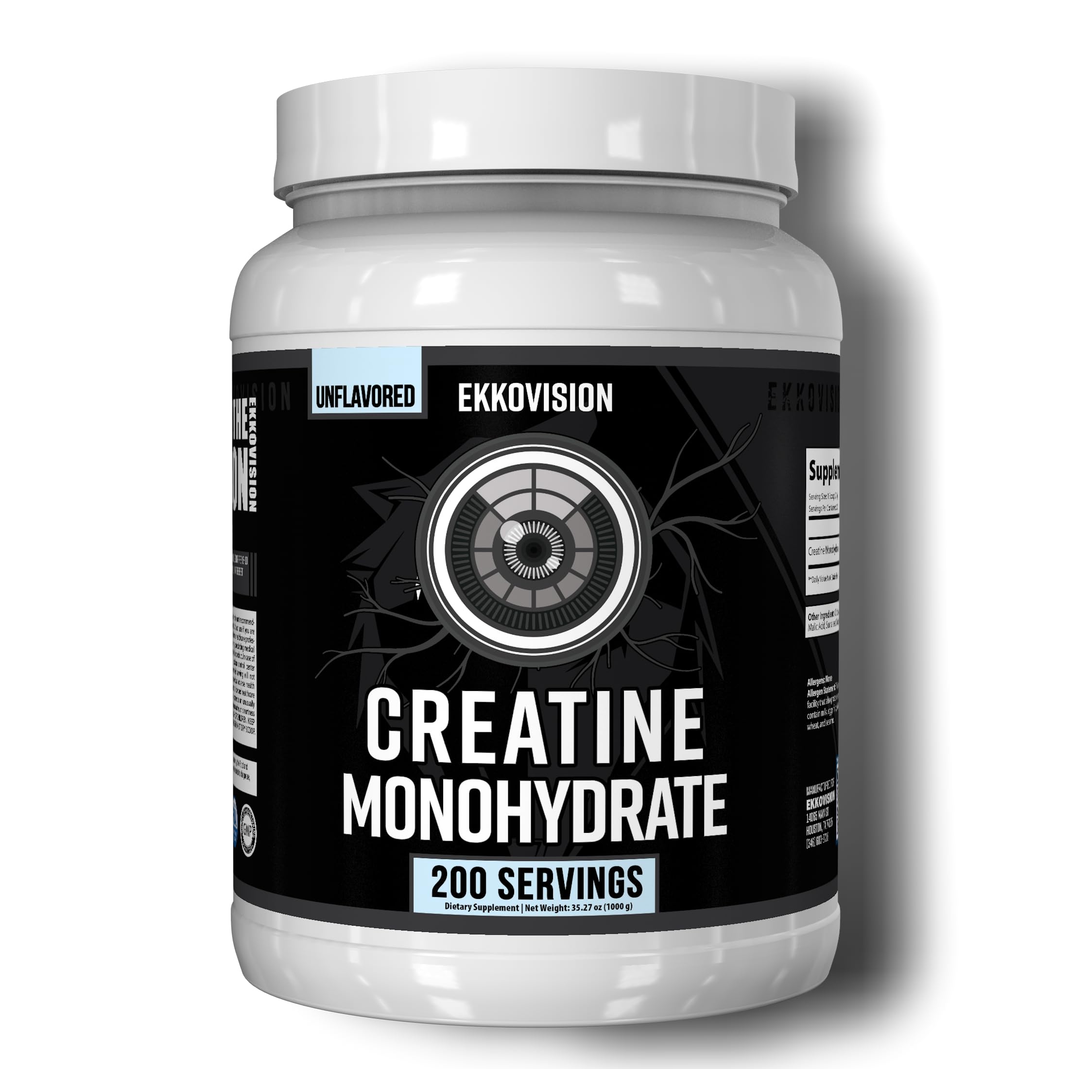 TRY ALL EKKOVISION CREATINE FLAVORS FOR VARIETY: Explore the exciting range of Ekkovision Creatine flavors, from refreshing Pink Lemonade and Raspberry Watermelon to tropical Pina Colada and Island Surge. Satisfy your taste buds with options like Blueberry Mango, Green Apple, Strawberry Smash, Glacier Gummy, Cherry Limeade, and Puckin' Blue Razz. Prefer a more neutral option? Choose the unflavored variety for complete versatility. UNFLAVORED FOR CUSTOMIZATION AND FLEXIBILITY: Enjoy the freedom to mix Ekkovision Creatine Monohydrate with your favorite beverages or recipes. With no added flavor, this creatine powder offers full flexibility, letting you personalize your intake to suit your preferences. SUPPORTS PERFORMANCE, ENERGY, ENDURANCE, AND COGNITION: Ekkovision Creatine Monohydrate can help support physical performance during high-intensity workouts, replenish energy for sustained effort, and promotes endurance for longer sessions. By increg phosphocreatine in your body, it can help power, strength and speed. Emerging research suggests it may also support cognitive focus, making it a versatile addition to your active lifestyle. PERFECT FOR GYM, SPORTS, AND ACTIVE LIFESTYLES: Tailored for athletes and fitness enthusiasts, Ekkovision Creatine is a go-to supplement for your gym sessions, sports activities, and training programs. Its unflavored formula blends effortlessly into your drinks without altering taste or texture. PURE MICRONIZED CREATINE MONOHYDRATE FOR EASY MIXING: Experience Ekkovision Creatine Monohydrate with a fine, micronized texture that dissolves smoothly in water, juice, or shakes. Enjoy a versatile, unflavored formula that seamlessly fits into your daily routine, whether for workouts or overall energy and fitness support. Each container delivers 200 servings, making it a practical choice for those committed to their fitness goals.