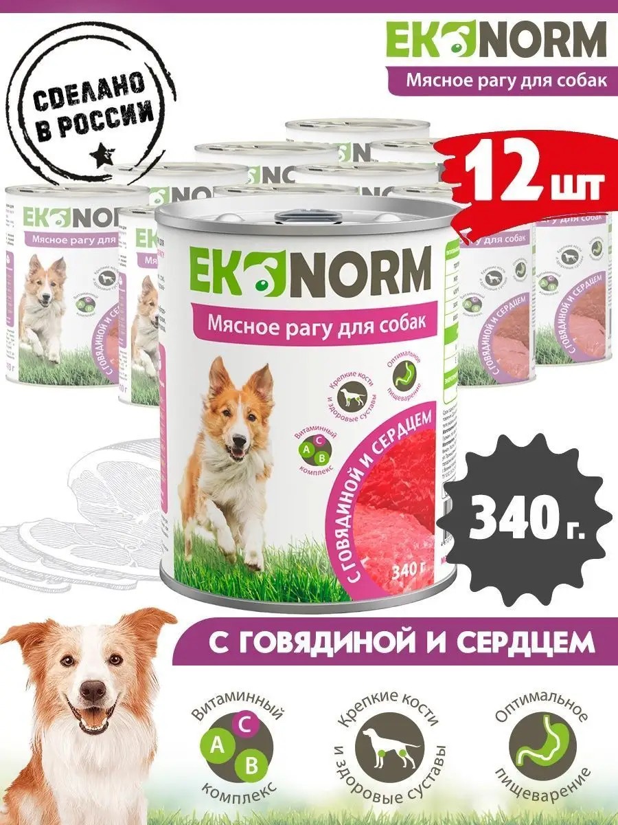 Ekonorm Корм для собак влажный говядина и сердце 340 г 12 шт