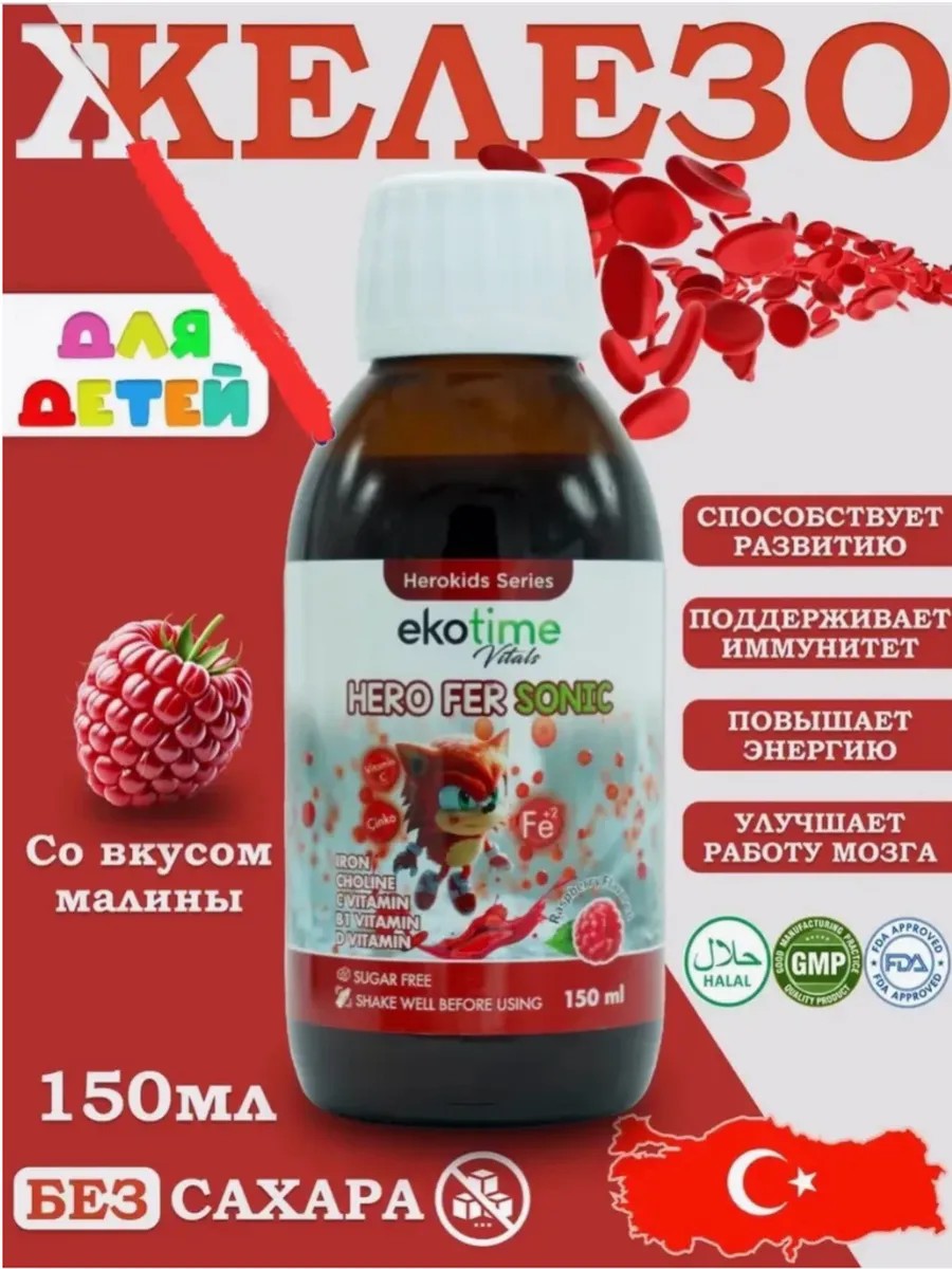 Hero Fer Sonic children's syrup from Ekotime Vitals with iron bisglycinate and vitamin C is designed to maintain normal iron levels in a child's body, strengthen the immune system and improve overall health.