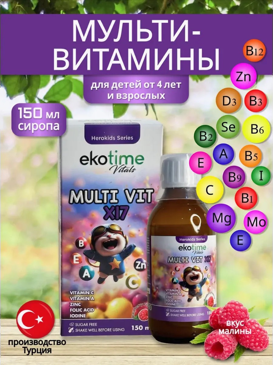 Этот витаминно-минеральный сироп предназначен для детей от 4 лет и способствует полноценному росту и развитию. Его состав включает ключевые витамины и микроэлементы, которые поддерживают здоровье костей, иммунную систему, когнитивные функции и общий метаболизм.