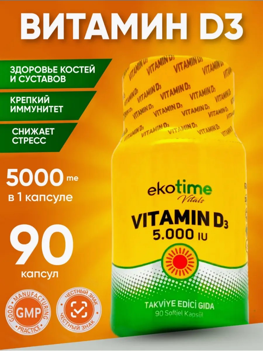 ekotime vitals Витамин D3 5000 90 капсул Турция