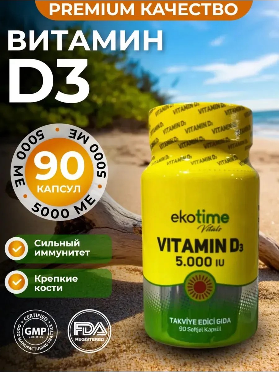 КомплектацияД3 5000 Ekotime 90 капсул - 1 шт.