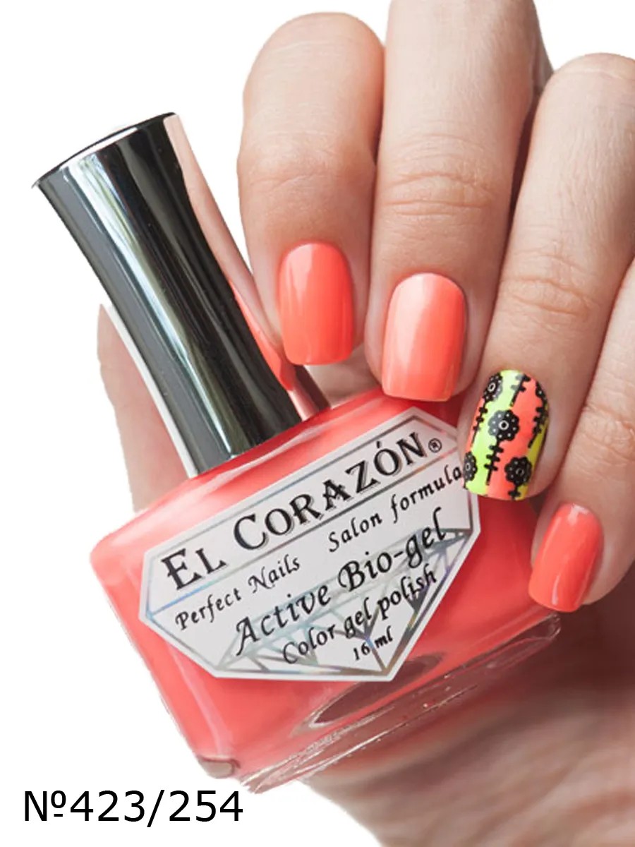 В конце весны-2014 компания EL Corazon порадовала своих поклонниц новой актуальной серией био-гелей "Jelly neon" №423/251-№423/257. Семь потрясающих ярких био-гелей желейной текстуры созданы для летнего маникюра и педикюра. Неоновые лаки снова на пике популярности. "Jelly neon" подарят Вам хорошее настроение не только днем, но и вечером, ведь они обладают особенностью светится при УФ-освещении. В 2014 году в моду вошел биманикюр. Если Вы стоите перед выбором двух цветов лаков, то покройте ноготки на одной руке одним цветом, а на второй другим.