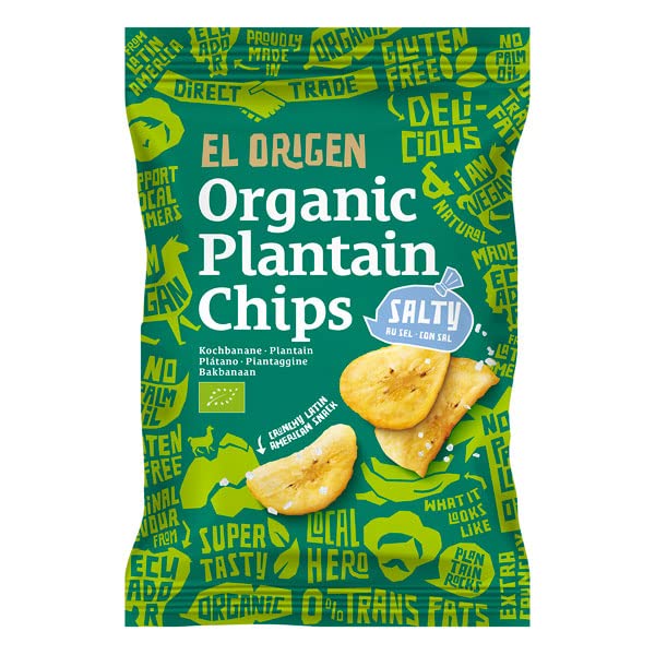 Crispy plantain chips with a hint of salt. Only 3 ingredients, palm oil free. Certified organic and fair trade. Naturally gluten-free. Vegan-friendly. 80g. See full descriptionSalted Plantain Chips 80g. El Origen. Chips. Organic Snack Biscuits. Organic Snacks. Chips croustillantes de banane plantain avec une pointe de sel. Seulement 3 ingrédients, sans huile de palme. Certifiées bio et issues du commerce équitable. Naturellement sans gluten. Compatibles régime vegan. 80g. Voir le descriptif completChips banane plantain au sel 80g. El Origen. Chips. Biscuits apéritif bio. Apéritifs bio.