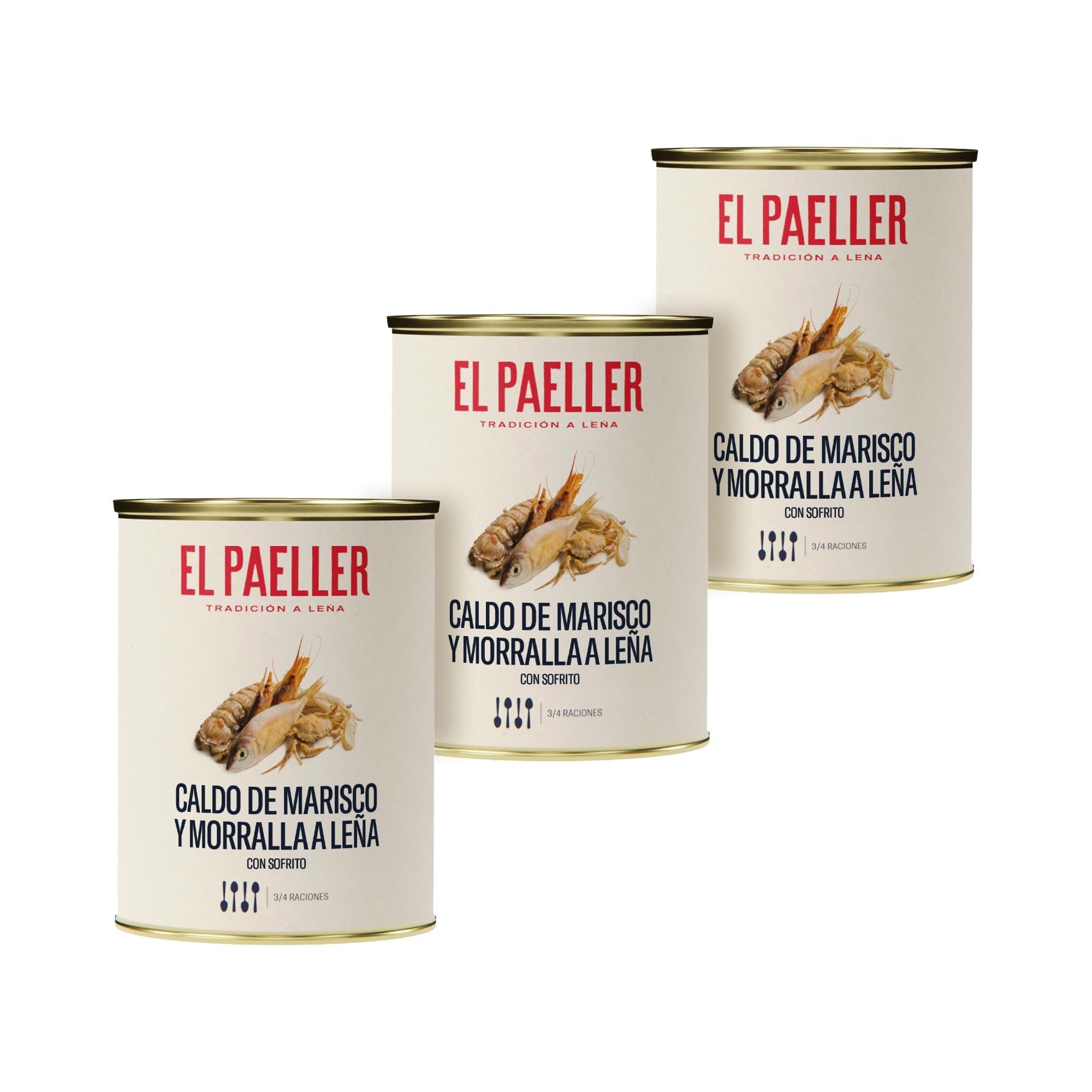 EL PAELLER - Fumet de poisson Cuisiné avec des ingrédients 100 naturels Parfait pour les paellas, les riz et les ragoûts Lot de 3 pièces, 3L Sans conservateurs