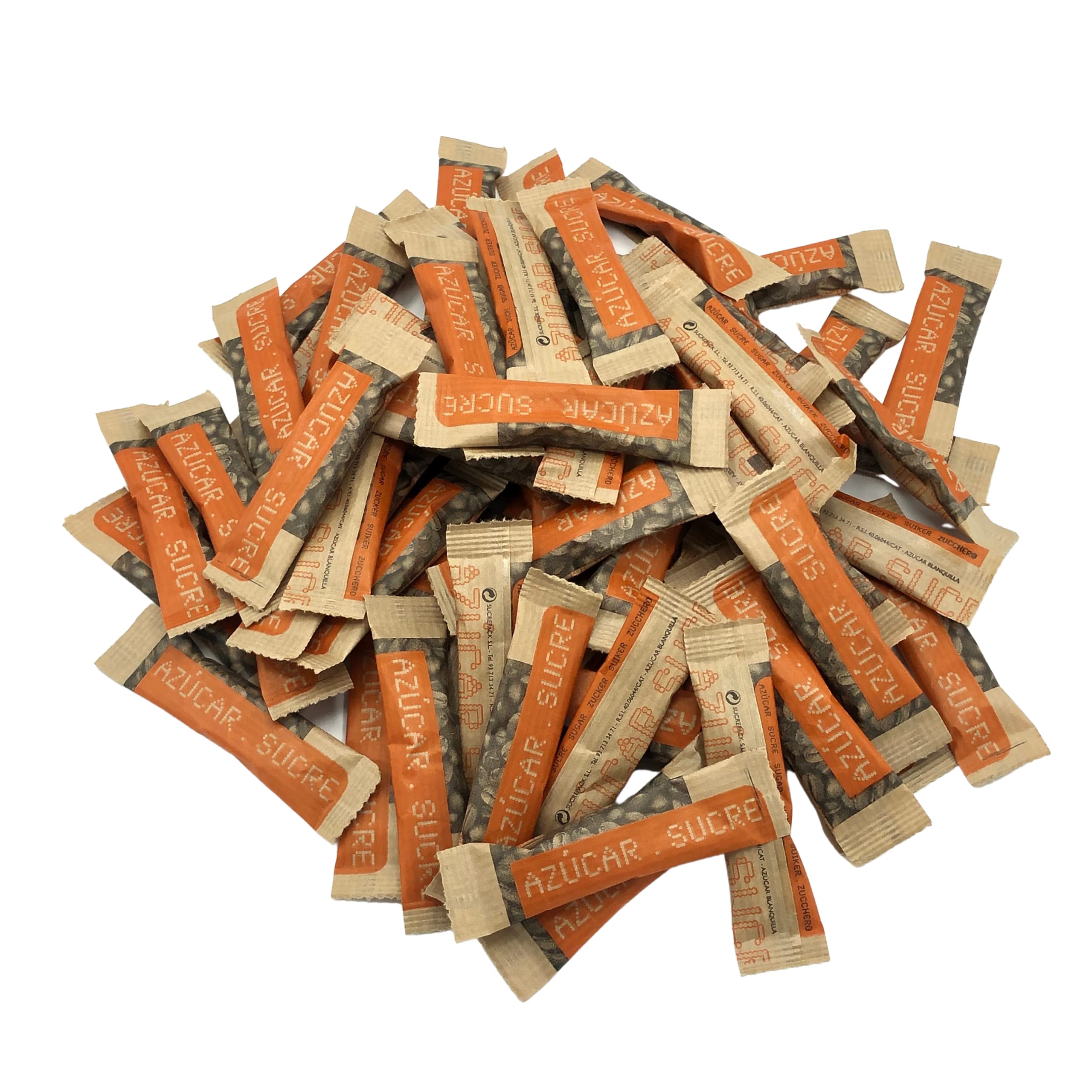 Brown sugar sticks produced in Spain and distributed throughout Europe. These sugar sticks are an aspartame-free sweetener and come in convenient packaging that complies with all food safety regulations. El Ático Sweet brown sugar sticks are an ideal sweetener for your coffees, teas, pastries, juices, cocktails, desserts, or fruit. Each sugar stick contains 6 grams of product, the equivalent of 2 teaspoons of sugar. 200 high-quality, easy-to-dissolve, natural-tasting sugar sachets.Sucre stick roux produits en Espagne et distribués dans toute l'Europe. Les sucre en sachet sont un édulcorant sans aspartame et sont présentés dans un emballage pratique conforme à tous les contrôles de sécurité alimentaire. Les sucre sachet roux El Ático Sweet sont un édulcorant idéal pour vos cafés, thés, pâtisseries, jus de fruits, cocktails, desserts ou fruits. Les buchette sucre contiennent 6 grammes de produit, soit l'équivalent de 2 cuillères à café de sucre. 200 sachets de sucre de haute qualité, facile à dissoudre et au goût naturel.