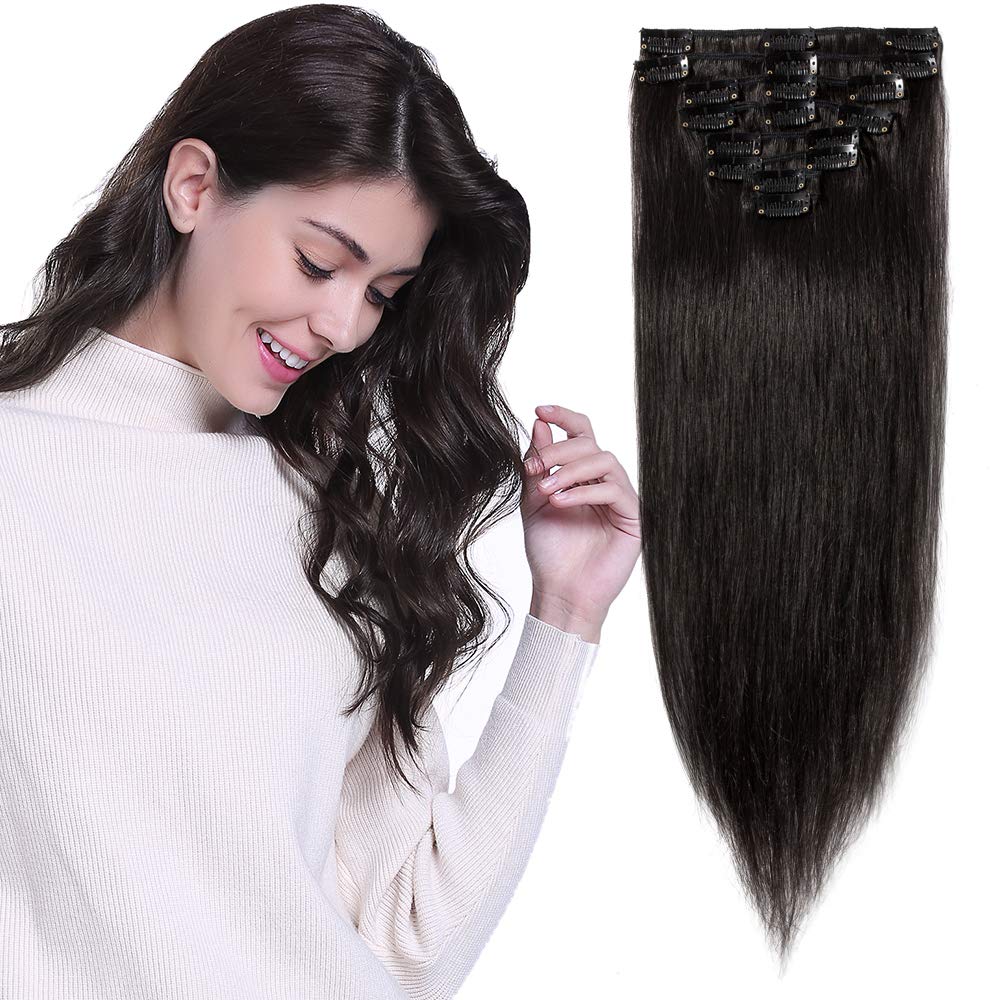? ?About colors? The hair extension colors could be a little different because of the monitor.We ask you for your understanding.We can help you choose the appropriate color.If you have any questions, let us know at any time.? ?DIY? can be flawed, ruffled, smoothed and colored like your own hair.(All real hair can only be colored darker, never bleach. Please pay attention to it. The temperature should be below 180 degrees).? ?Specification? This extension comprises 8 pieces and 18 clips, of which two 20cm wide bricks with 3 clips each, two 15cm with 3 clips each, two 10cm with 2 clips each, two 5cm with 1 clip each.? ?Easy to wear, no damage? In 5 minutes you can use clip in extensions flexibly after choosing without adhesives, adhesive tapes.? ?100% real hair? This clip in extensions are made of 100% remy real hair, so they look very natural, soft, smooth and shiny silky.??Über Farben?Die Haarverlängerungsfarben könnten wegen der Monitor wenig unterschiedlich sein. Wir bitten Ihnen um Ihr Verständnis. Wir können Ihnen bei der Auswahl der geeigneten Farbe helfen. Falls Sie irgendwas Fragen haben, teilen Sie uns jederzeit mit. ??DIY?Kann gewäscht, gekräuselt, geglättet und gefärbt werden wie Ihr eigenes Haar. (Alle Echthaare können nur dunkler gefärbt werden, niemals bleichen. Achten Sie bitte darauf. Die Temperatur soll unter 180 Grad.). ??Spezifikation? Diese Extension umfasst 8 Stücke und 18 Clips, davon zwei 20cm breite Tressen mit je 3 Clips, zwei 15cm mit je 3 Clips, zwei 10cm mit je 2 Clips, zwei 5cm mit je 1 Clip. ??Einfach zu tragen, keine Beschädigung?In 5 Minuten können Sie Clip in Extensions nach Wahl flexibel einsetzten, ohne dass Klebstoffe, Klebebänder erforderlich sind. ??100% Echthaar?Diese Clip in Extensions sind aus 100% Remy Echthaar, deshalb wirken sie sehr natürlich, weich, geschmeidig und glänzend seidig.Elailite Haarverlängerung Echthaar Clip in Haarteil für Komplette Haare Extensions 20cm 45g 8 Teilig Set 18 Clips Glatt Full Head Human Hair 8" #1B Natürliches Schwarz