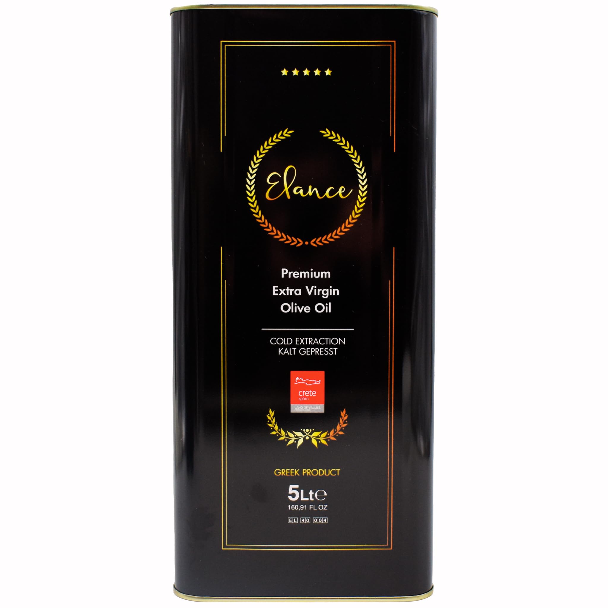 Elance - Premium Extra Virgin Olive Oil from Crete with an expiration date of September 30, 2023, and an acidity of 0.16 . This extra virgin olive oil is of the highest quality, 100 natural and purified. It is distinguished by its exceptionally mild and fruity aroma. The olives are 100 hand-selected, so songbirds are spared during harvesting, as no machinery is used. The oil was bottled on April 9, 2022, ensuring its freshness. From harvest to the final product, a strict combination of traditional cultivation and harvesting methods is employed. The olives are processed the same day and cold-extracted at a temperature below 27 C. This oil extraction method ensures the olive oil's full potential. From harvest to bottling, everything takes place on-site. There is no transport of inferior quality between the olive mill and the bottling facility. Thus, we get the full taste, aromas, and all the antioxidants of Elance olive oil on our plates. Elance premium olive oil comes from the Koroneiki olive variety. According to scientific standards, the Koroneiki olive is considered the best fruit variety in the world for olive oil. Our olive oil is ideal for raw foods, salads, with bread, tomato and mozzarella or sheep's cheese, or for cooking vegetables. Cooking is not a problem with our olive oil. The oil has a very slightly bitter taste and a fruity aroma. It also goes very well with braised or grilled fish or meat, grilled vegetables, as well as pasta, risotto, potato purée, or soup to refine. Our olive oil comes from Georgios Dimitrakis. The Dimitrakis family has been farming for five generations. Mr. Dimitrakis is passionate about agriculture, which is already well-established. INSTRUCTIONS FOR USE Use the olive oil for eating and roasting. Store it in a cool, dry place. It does not contain allergens.Elance Olive Oil 5 Liters Extra Virgin Premium – New Harvest – Directly from Crete, Greece – First-Class Quality – 100 HandpickedDESCRIPTION DU PRODUIT DESCRIPTION DU PRODUIT Elance - Huile d'olive extra vierge de qualité supérieure de Crète avec date d'expiration : 30.09.2023, acidité : 0,16 . L'huile d'olive extra vierge est hautement qualifiée, 100 naturelle et purifiée. Il se distingue par son arôme fruité doux et exceptionnel. 100 sélectionnés à la main, les oiseaux chanteurs sont donc épargnés lors de la récolte, car aucune machine n'est utilisée. Date de remplissage : 09.04.2022, l'huile est donc fraîche. De la récolte au produit final, une combinaison stricte de méthodes traditionnelles de culture et de récolte est utilisée. Les fruits d'olive sont traités le même jour et extraits à froid à moins de 27 C. Cette méthode d'extraction de l'huile assure le déploiement de l'huile d'olive. De la récolte à la mise en bouteille, tout se passe sur place. Il n'y a pas de transport de qualité inférieure entre le moulin à huile et le système de remplissage. Ainsi, nous obtenons le goût complet, les arômes et tous les antioxydants de l'huile d'olive Elance sur nos assiettes. L'huile d'olive Elance de qualité supérieure est issue de la variété d'olive Koroneiki. Selon les normes scientifiques, l'olive Koroneiki est considérée comme la meilleure variété de fruits au monde pour l'huile d'olive. Notre huile d'olive est idéale pour les aliments crus, les salades, avec du pain, de la tomate et de la mozzarella ou du fromage de brebis ou pour cuire des légumes. La cuisson n'est pas un problème avec notre huile d'olive. L'huile a un goût amer très léger et possède un arôme fruité. Es passt auch sehr gut zu gebratenem oder gegrilltem Fisch oder gegrilltem Fisch oder Fleisch, gegrillten Gemüse sowie Pasta, Risotto, Kartoffelpurree oder Soupe zu verfeinern. Notre huile d'olive provient de Georgios Dimitrakis. La famille « DIMITRAKIS » se compose de cinq générations consécutives. M. Dimitrakis exploite de cœur l'agriculture qui est déjà MODE D'EMPLOI Utilisez l'huile d'olive pour manger et rôtir. Conservez-la dans un endroit frais et sec. Elle ne contient pas d'allergènes.