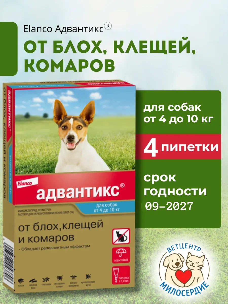 Elanco Адвантикс от клещей для собак до 4-10 кг 4 пипетки