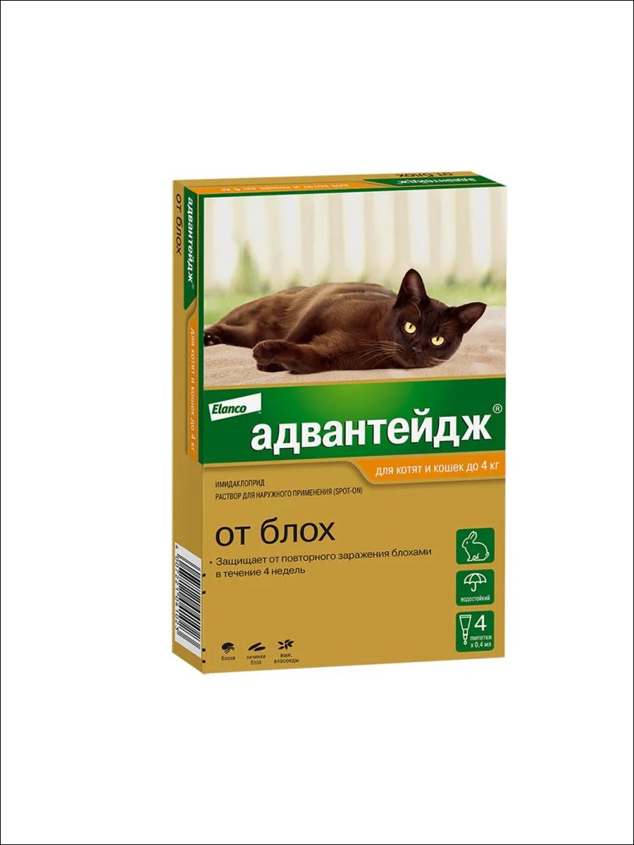 Elanco Адвантейдж от блох для кошек до 4 кг, 4 пипетки