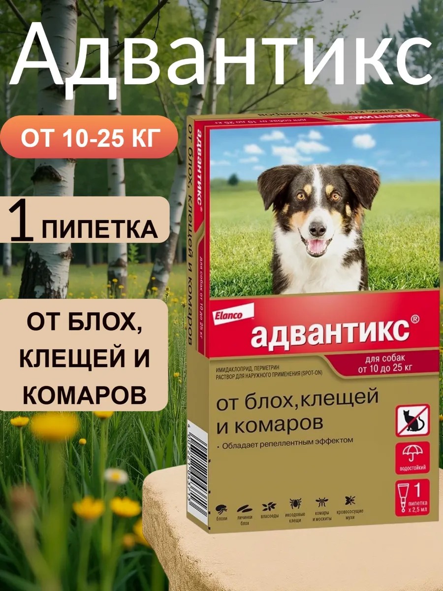 Elanco Адвантикс для собак весом от 10 до 25 кг упаковка,1 пипетка