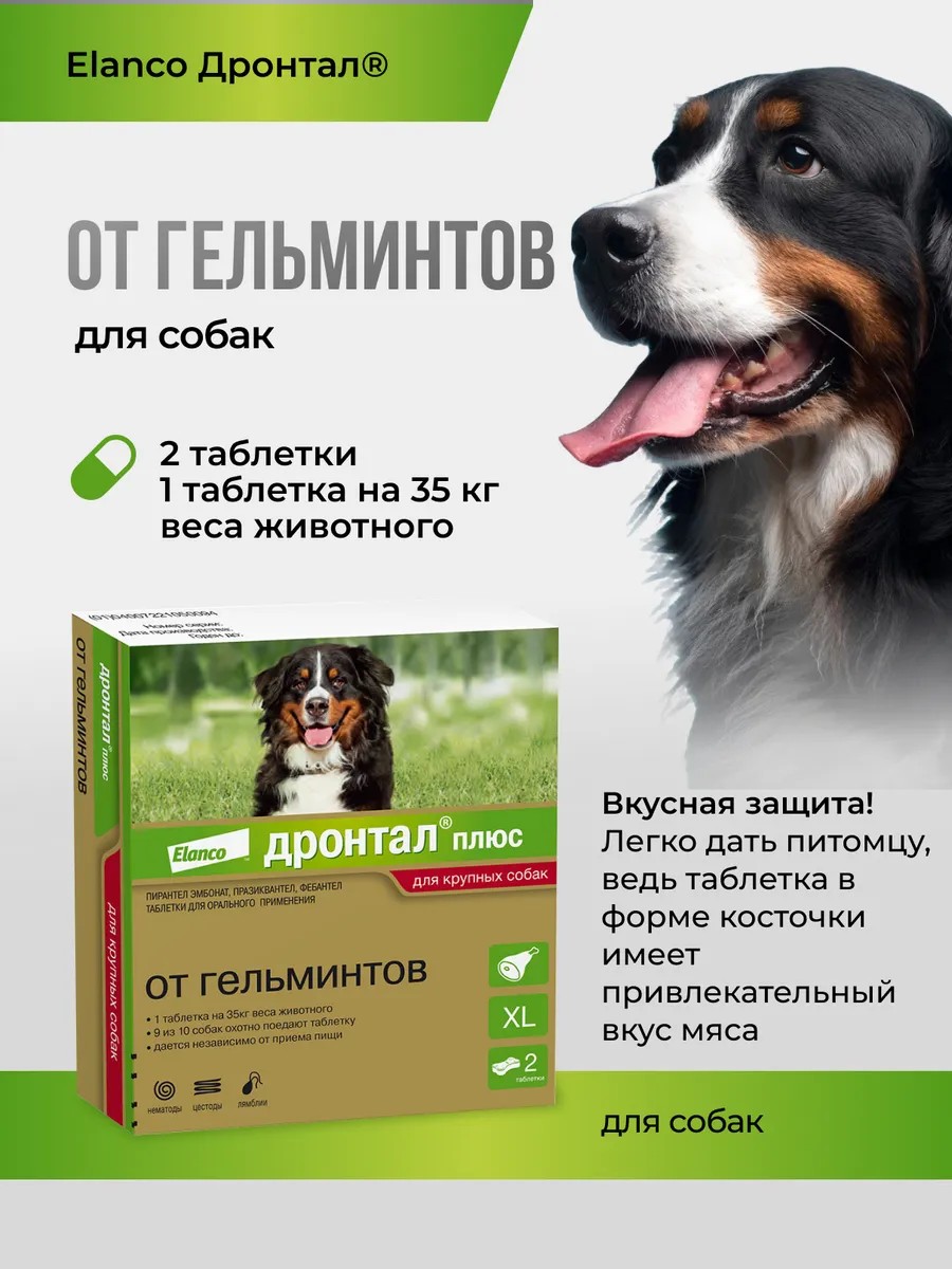 Elanco Дронтал плюс от гельминтов со вкусом мяса ХL, 2 табл