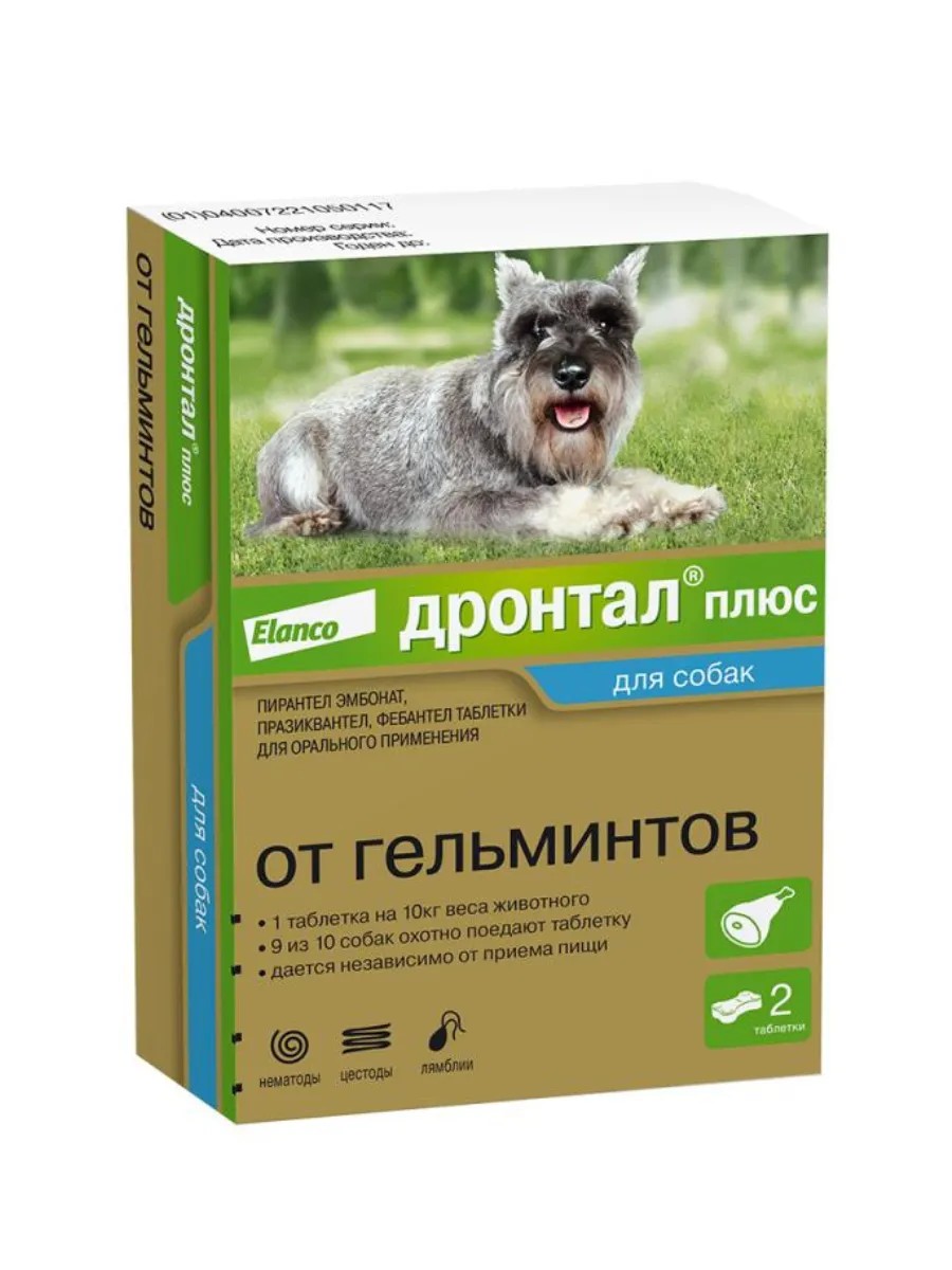 Дронталплюс, таблетки от глистов и простейших для собак, – препарат от компании Elanco, помогающий избавить вашего питомца от самых распространенных внутренних паразитов – круглых и ленточных гельминтов, а также от простейших – лямблий.